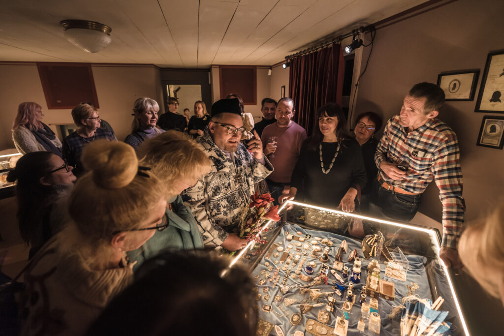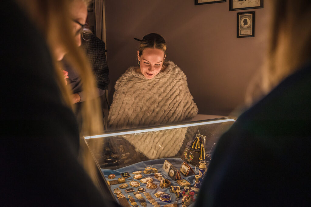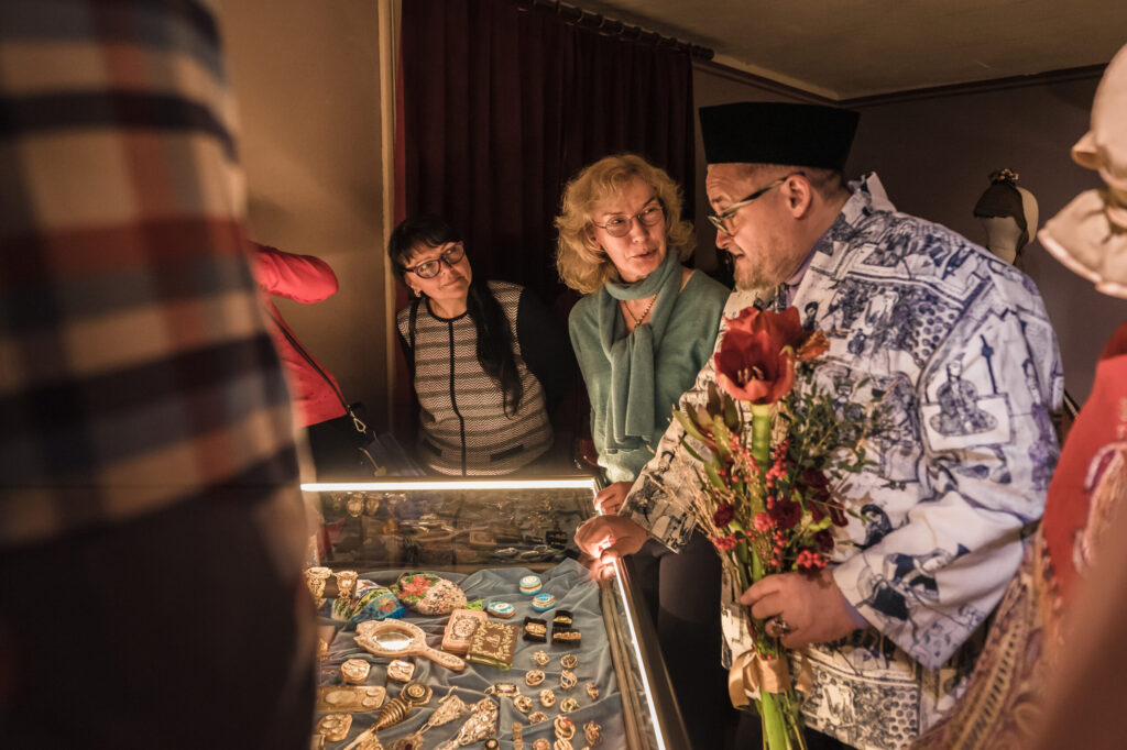 Izstādes atklāšanas notikumā ar sirsnīgu un saturīgi bagātīgu uzrunu par izstādē redzamo dalījās Aleksandrs Vasiļjevs, izklāstot galvenās rotu tendences un rotāšanās tradīcijas Viktorijas laika Eiropā, portālu “ReKurZeme” informē Liepājas muzeja filiāles “Liepājas 17.–19. gs. interjera muzejs “Hoijeres kundzes viesu nams”” vadītāja Ieva Dzintare.