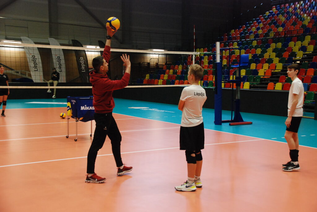 Meistarklasē piedalījās Liepājas Sporta spēļu skolas 20 labākie volejbolisti.