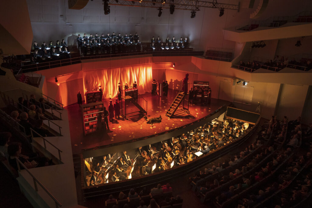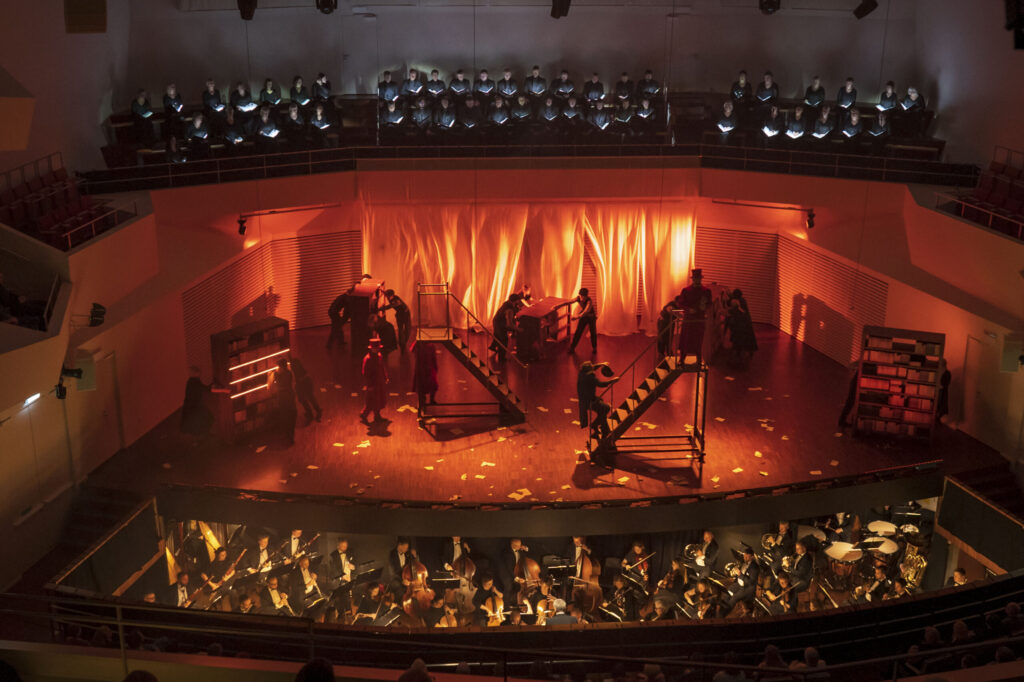 Franču heroiskā romantisma ģēnija Hektora Berlioza “Fausta pazudināšana” pēc būtības ir opera par dziļi cilvēciskām tēmām, kuras skatītāji iepazīst caur Fausta ilgošanos, Mefistofeļa kārdinājumu un Margeritas maldīšanos. Šī stāsta skatuviskumu veidoja Vācijā un Austrijā augstu vērtētā režisore Huana Inesa Kano Restrepo (Juana Ines Cano Restrepo) un Latvijā atzītā māksliniece Anna Heinrihsone, kuras pārziņā bija gan scenogrāfija, gan tērpi.