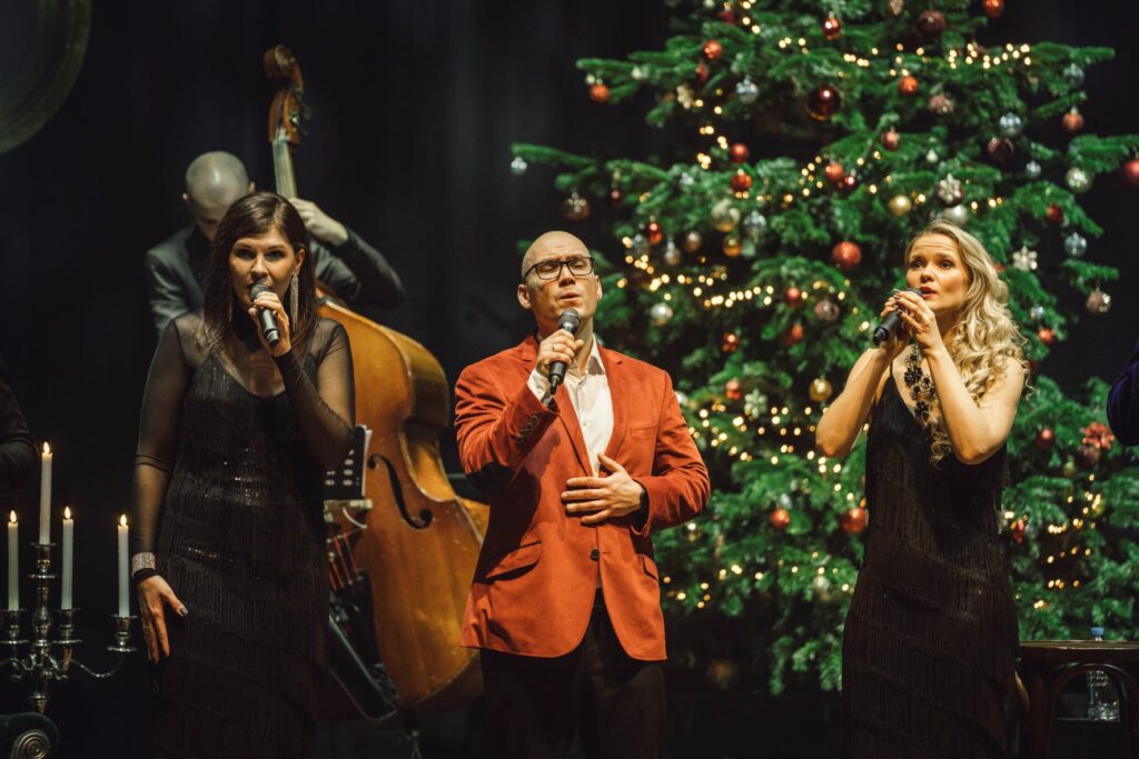 Svētku programmā mūziķi klausītājus veda ceļojumā pa dažādiem laikmetiem, kuros apspēlēta Ziemassvētku sajūta, mīlestība un Kristus dzimšana. Līdzās skaistākajām melodijām un dziesmām no tradicionālās svētku mūzikas, koncertā izskanēja arī izcilu latviešu komponistu hiti un speciāli šim koncertam rakstīti jaundarbi aranžējumos džeza instrumentālajam trio un vokālajam kvartetam, portālu “ReKurZeme” informē SIA “Lielais Dzintars” sabiedrisko attiecību speciāliste Anita Lazdeniece.