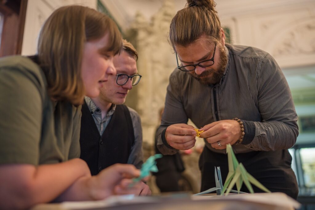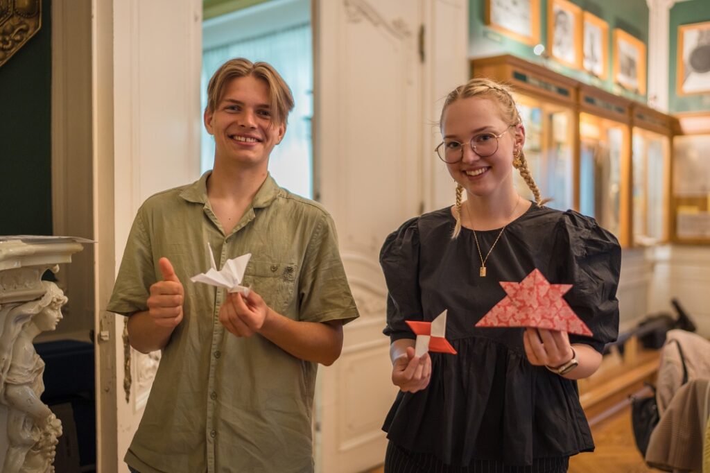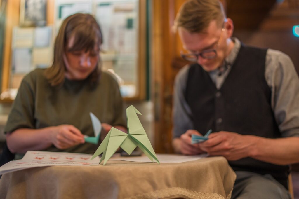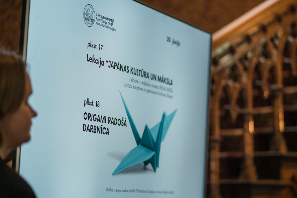 Liepājas muzejā pirms svētkiem pulcējās liels interesentu loks, lai ieklausītos visaptverošā stāstījumā par Japānas mākslu un veidotu origami. Lekcija un radošā darbnīca notika izstādes “Pārsteidzošā Japānas Tohoku lietišķā māksla” laikā.