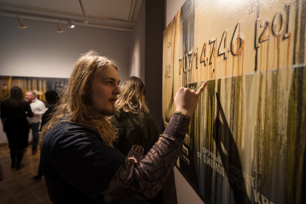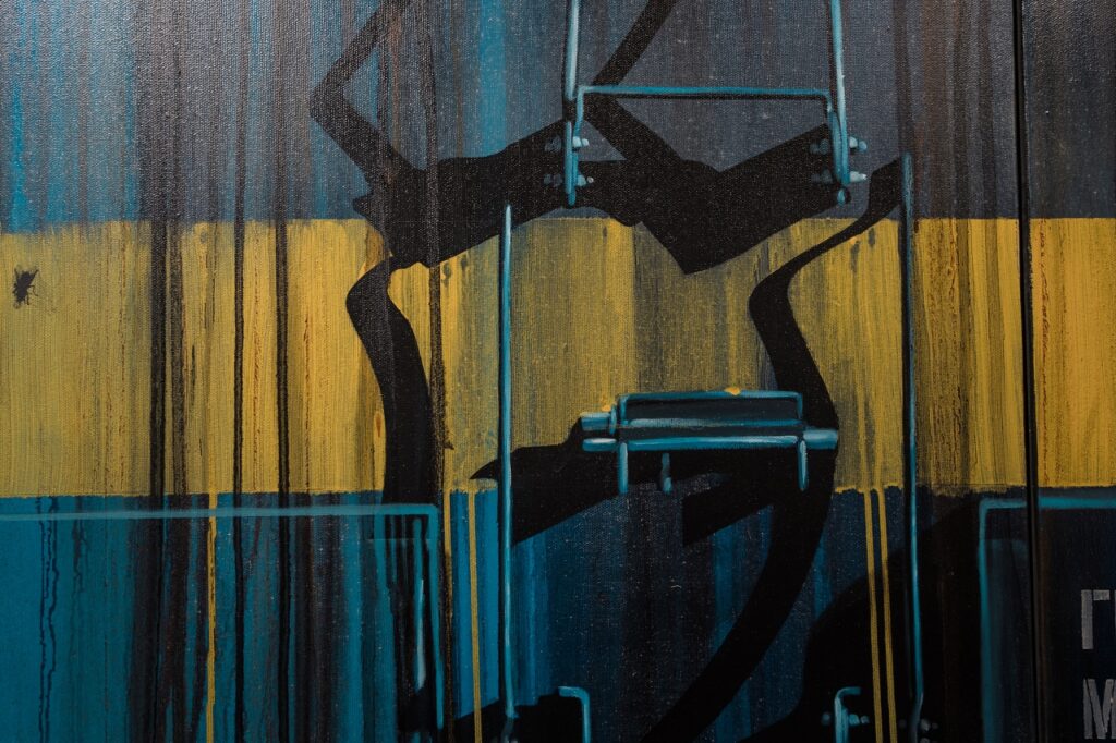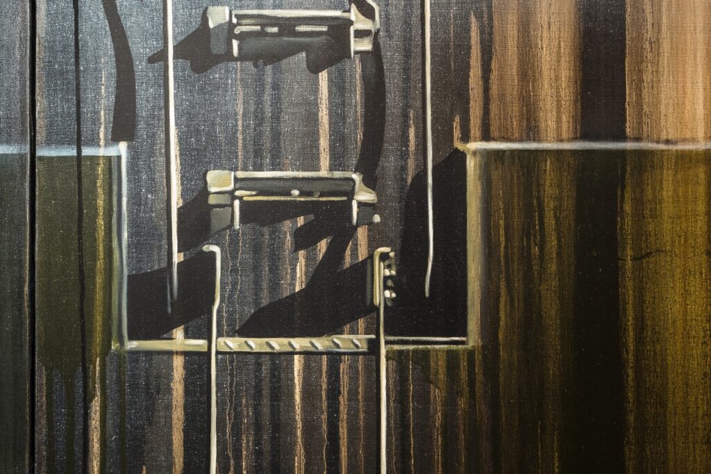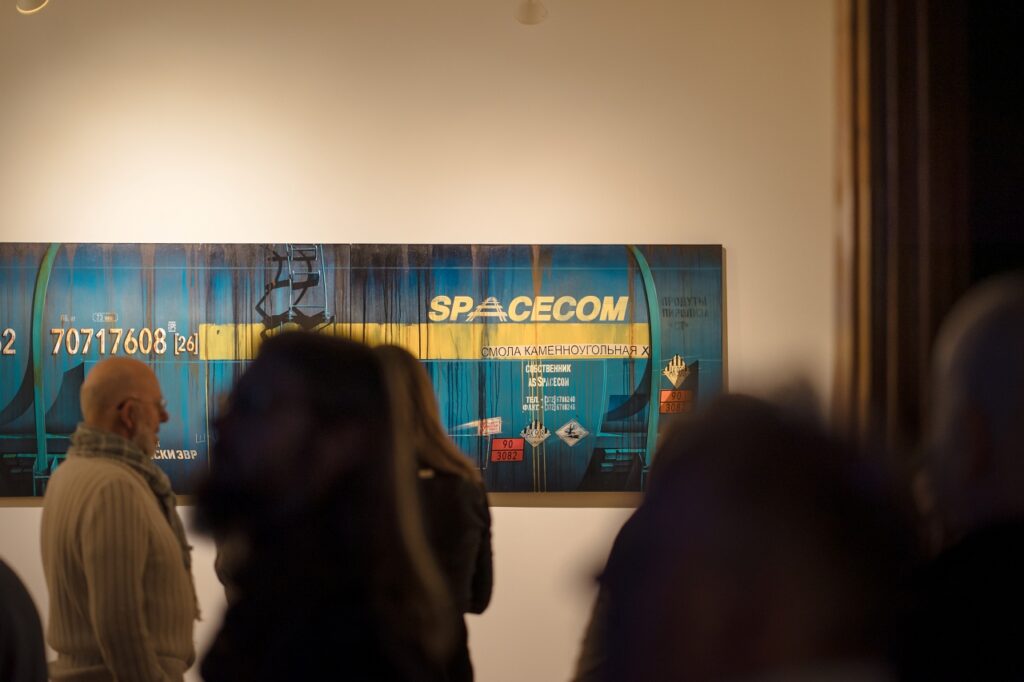Vagonus atveidojot, apvienotas dažādas tehnikas – sausā ota, tecinājums un trafareti, kas vizuāli veido uzslāņojumu efektu. Šī izstāde rada idejiskas paralēles ar cilvēku savstarpējās mijiedarbības ideju un tās atstātajiem nospiedumiem.