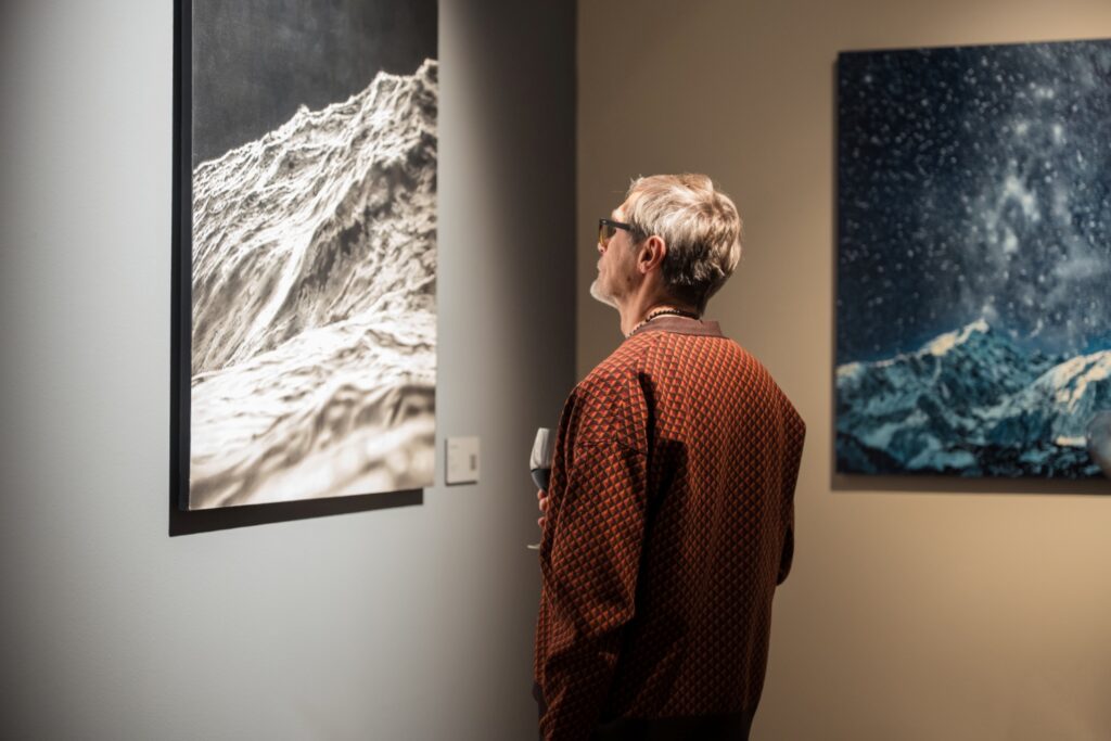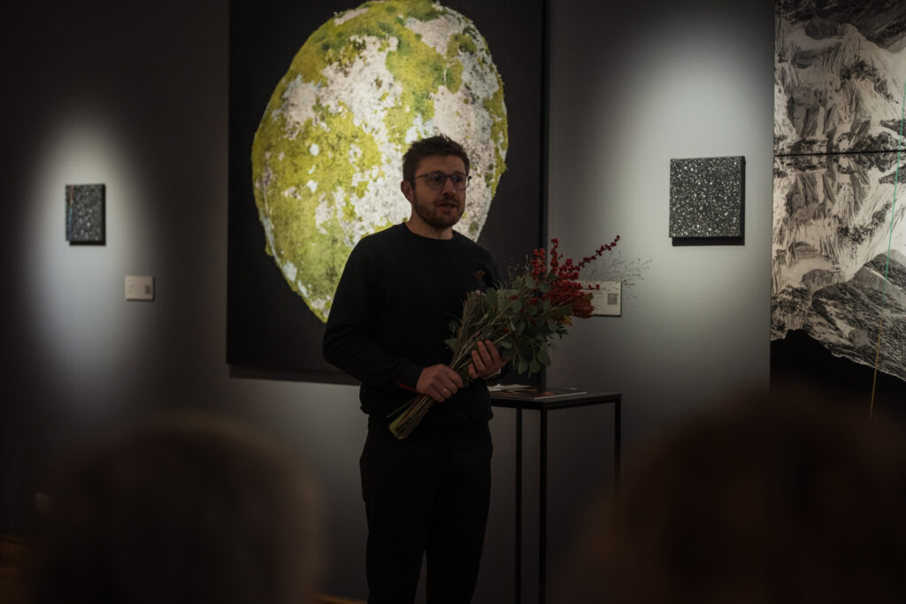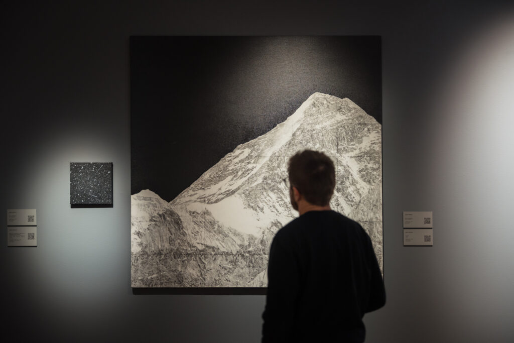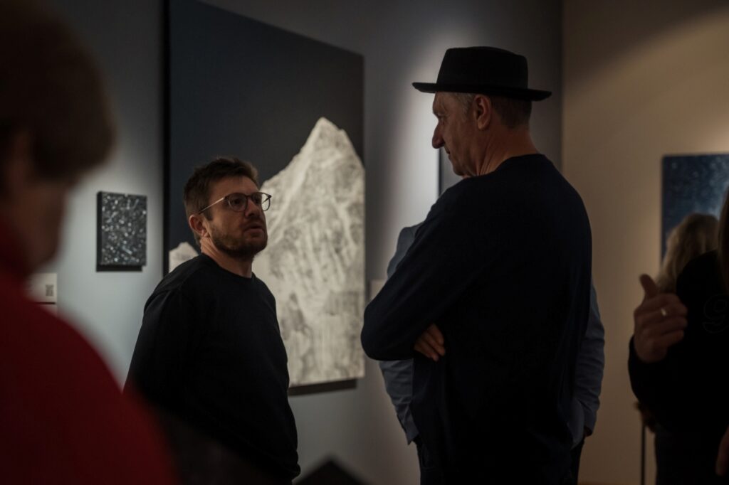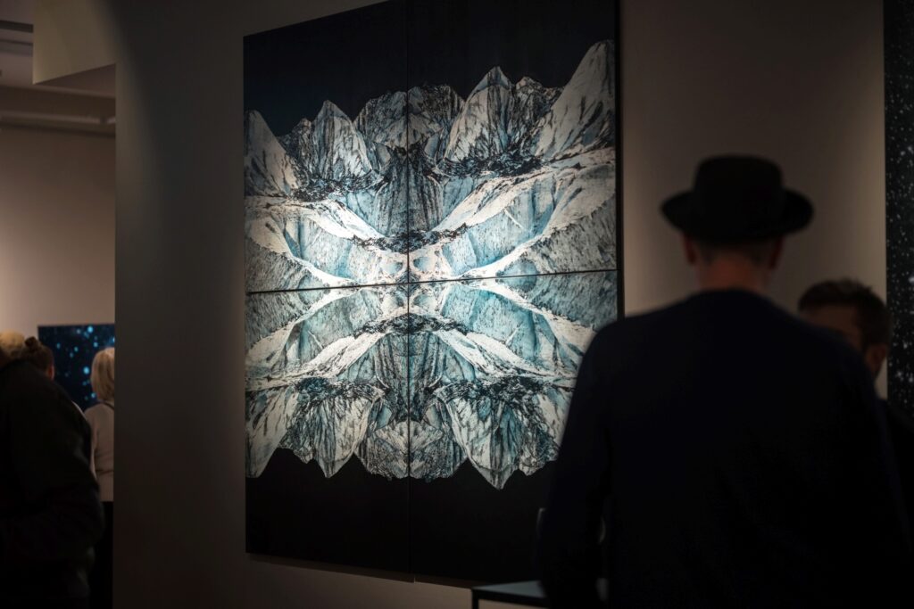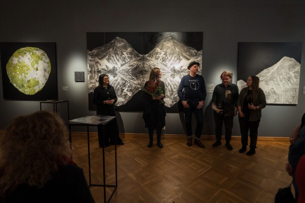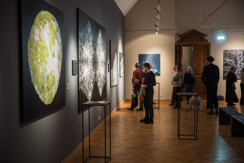Piektdien, 12. decembrī, Liepājas muzeja lielajā izstāžu zālē Kūrmājas pr. 16/18 tika atklāta divu latviešu mākslinieku – gleznotājas Agates Apkalnes un mūziķa Kristapa Graša – kopizstāde “Visuma pieskāriens”, kas piedāvā apmeklētājiem audiovizuālu, meditatīvu telpu, kur mūzikas un vizuālās mākslas sintēzē ziemeļnieciskās dabas skaistums un spēks atklājas zemes, ūdens un gaisa klātesamībā.