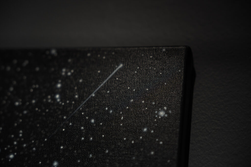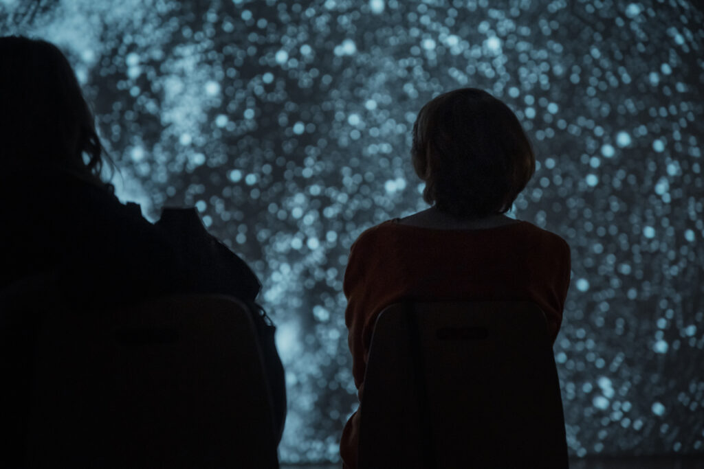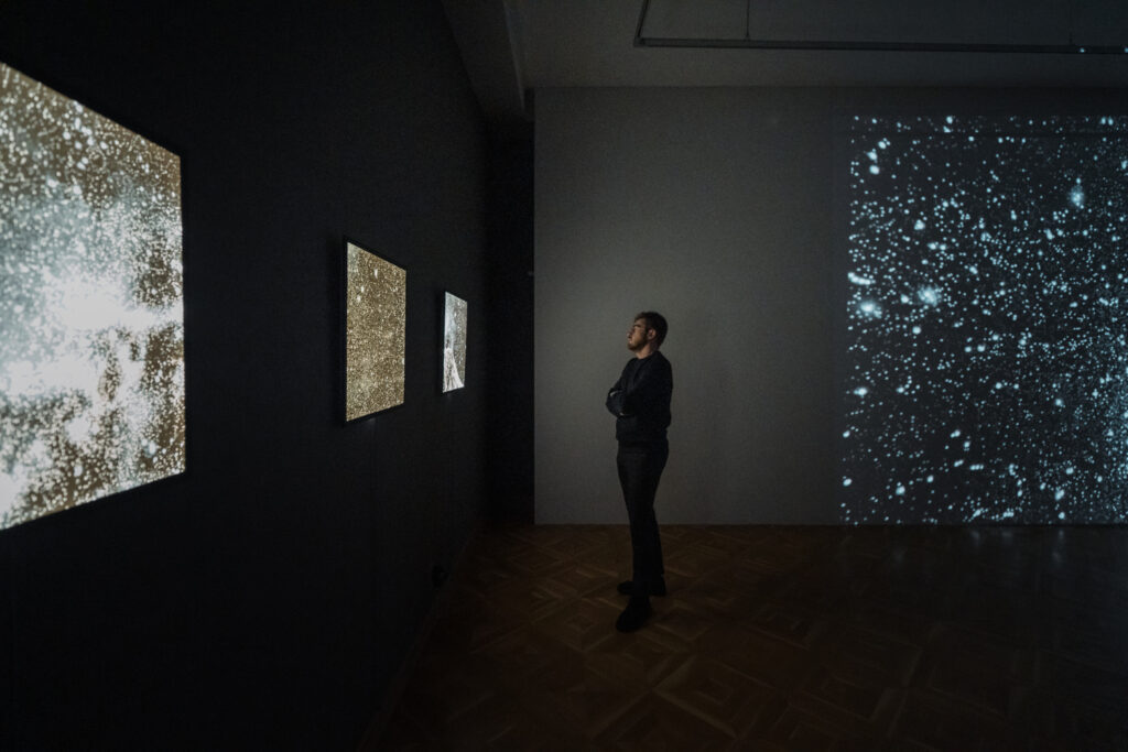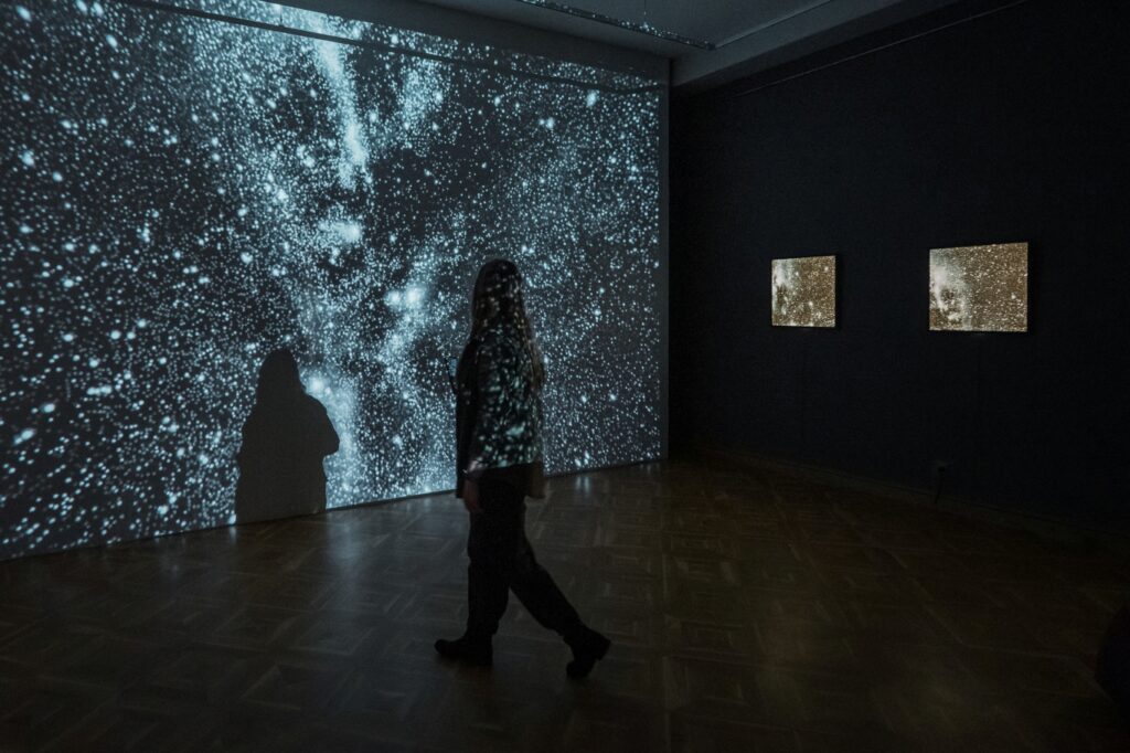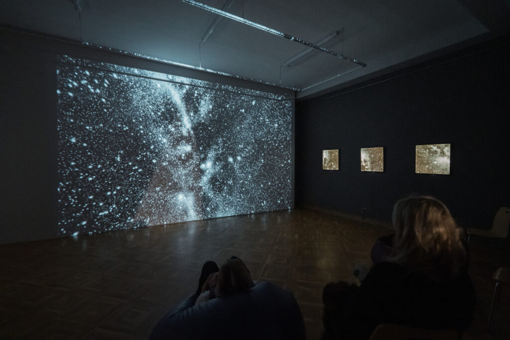 Izstādes “Visuma pieskāriens” ietvaros skatāma arī videoprojekcija “Ceļš uz Mājām”, kas konceptuāli papildina mākslinieku kopīgo vēstījumu par iekšējo ceļu un klusumu, aicinot apstāties, būt klātesošam mirklī un ļaut Visumam pieskarties skatītājam.