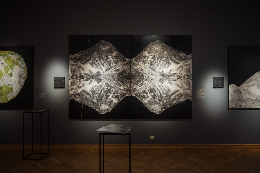Visas cikla “Visuma pieskāriens” spoguļu gleznas ir gleznotas kā četri atsevišķi darbi, kuri, savienojot, veido Dabas mandalu, un tos ir iespējams transformēt vai pārkārtot. Patiesība ir viena – taču katrs to redz no sava skatupunkta. Kalna, ūdens un atspulga motīvi simbolizē ceļu uz iekšējo mieru, apziņas pieaugšanu un dvēseles atgriešanos pie sevis.