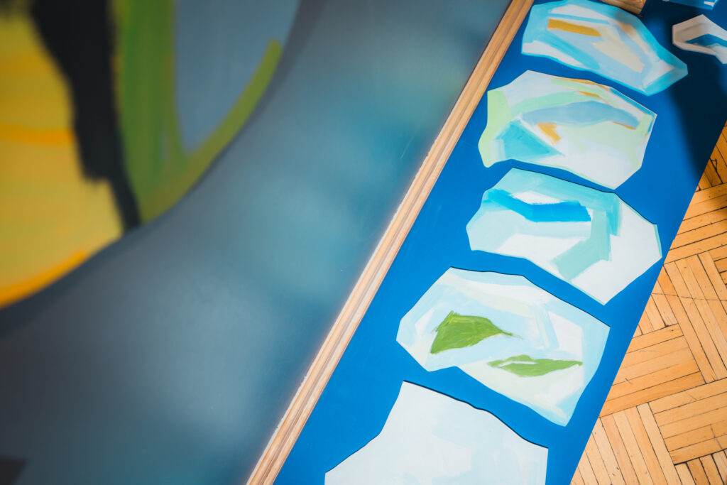 Iedrošinājums un impulss izstādei “Lauki” māksliniecei gūts 2023. gadā apmeklējot Londonu, kur “Baltajā kubā” Ilze Karlsone redzēja vācu laikmetīgās mākslas klasiķa Imi Knēbela (Imi Knoebel) ļoti uzrunājošo personālizstādi – abstrakcijas uz nenoteiktu formu plaknēm.