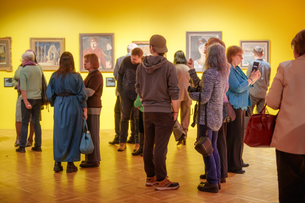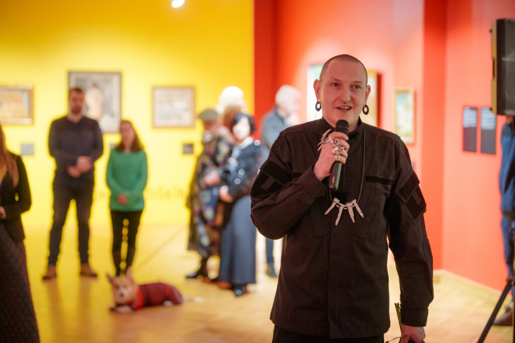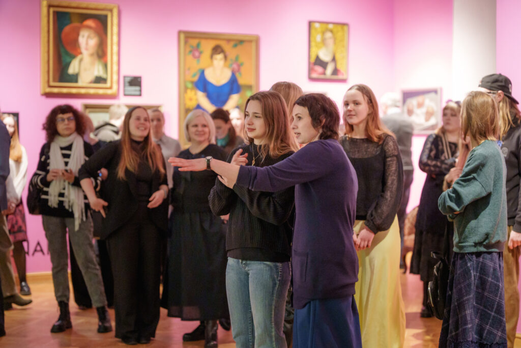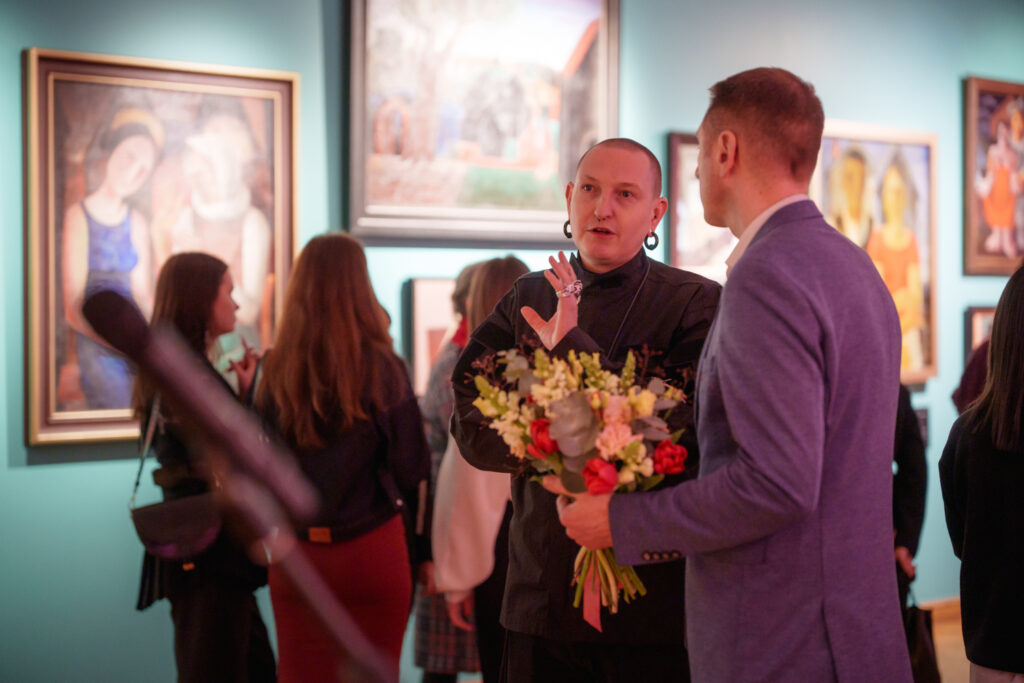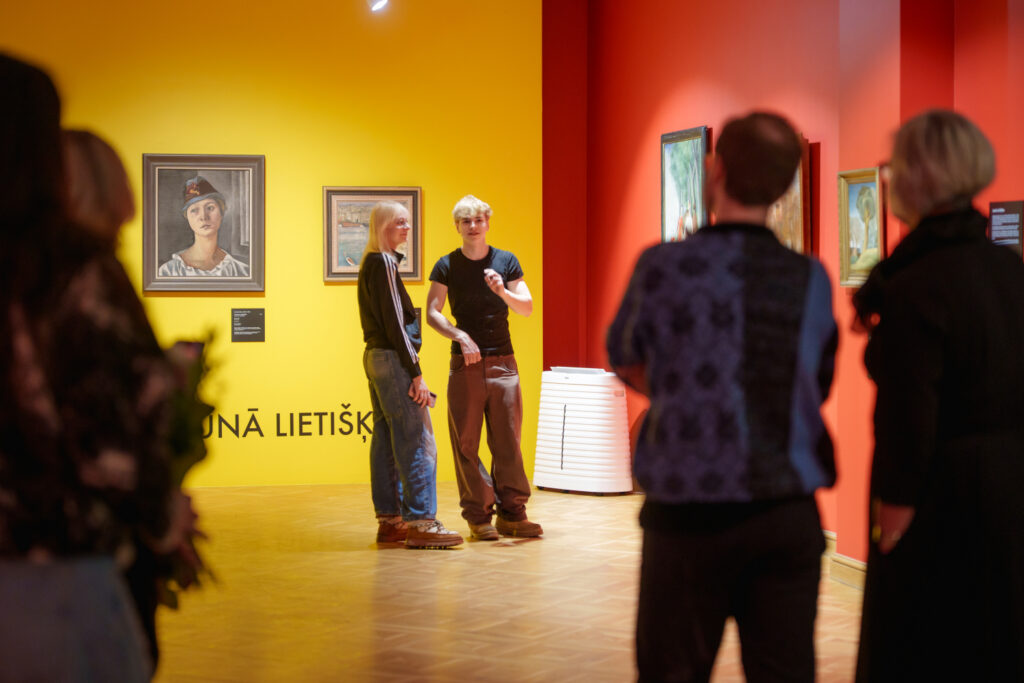 Uzrunājot klātesošos, izstādes scenogrāfs Kristians Brekte atklāja iedvesmas avotus un izstādes ieceri. Viņš norādīja, ka izstādes košās tonālās paletes iedvesmas avots bijis mākslinieks Ģederts Eliass, savukārt Ludolfa Liberta darbs “Lauku sievas” kalpojis par būtisku vizuālu atskaites punktu. Scenogrāfs uzsvēra, ka, viņaprāt, izstāde ir patriotiska, un akcentēja izvēlēto ekspozīcijas risinājumu – lakonisku, viegli uztveramu un izglītojošu tekstuālo materiālu.
