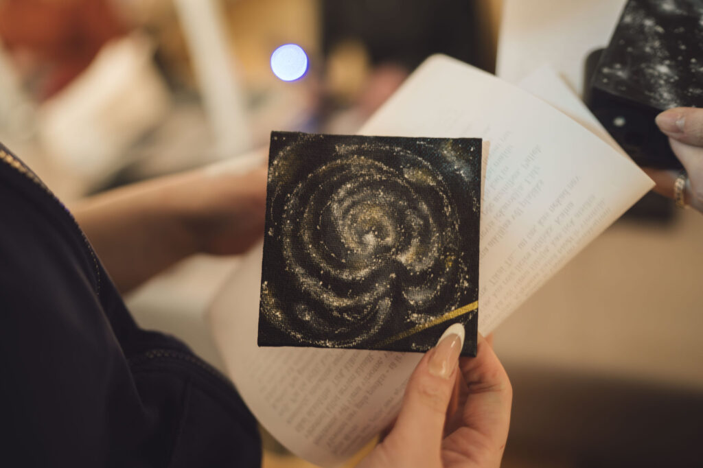 Gatavojoties meistarklasei, Agate Apkalne stāstīja, ka, gleznojot zvaigžņotas debesis, katra zvaigznīte, kas uzlikta uz audekla, viņai kļūst par satiktas dvēseles zīmi – kā pateicību par tikšanos un pieredzi. Katrai no tām ir savs attālums un intensitāte, ko nosakām mēs paši, kopā veidojot savas dzīves pagātnes zvaigžņu karti.