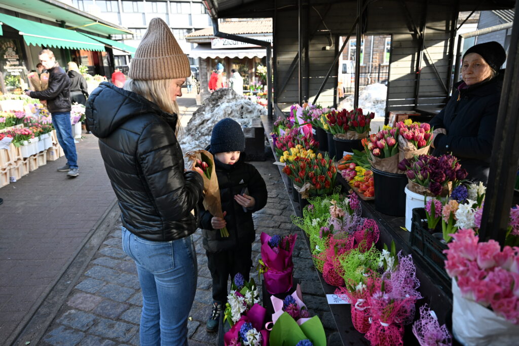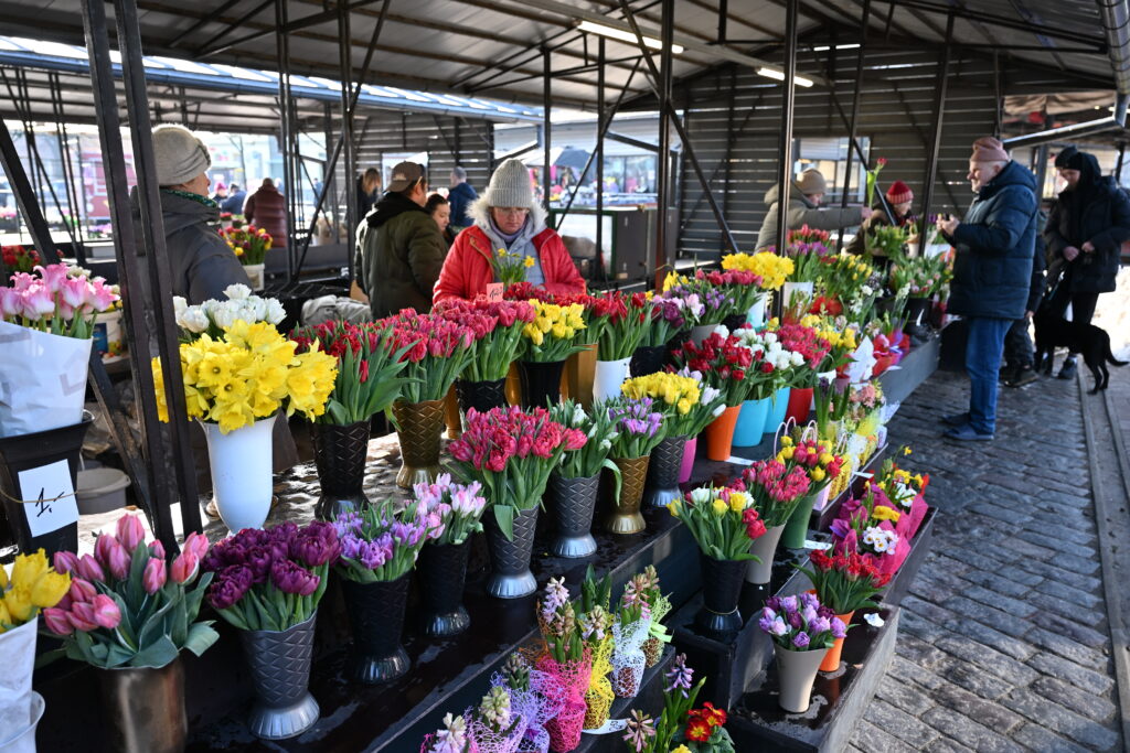 FOTO: Liepājas Pētertirgū vīrieši 8. martā pērk skaistākos ziedus dāmām