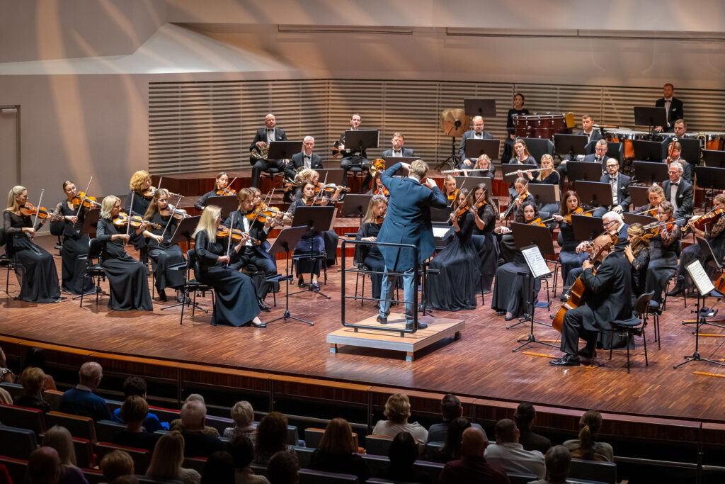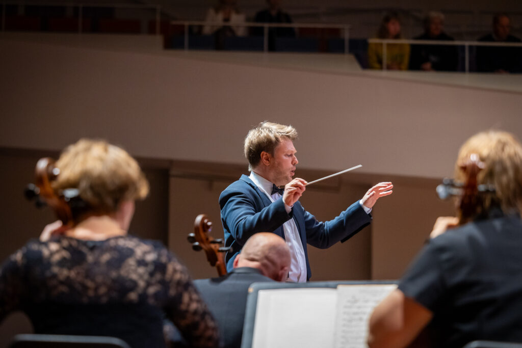 Diriģents un orķestra mākslinieciskais vadītājs Guntis Kuzma koncerta programmā līdzās pasaulē ievērojamiem klasiķiem – Žanam Sibēliusam un Antonīnam Dvoržākam – licis arī liepājnieka Agra Engelmaņa daiļradi.
