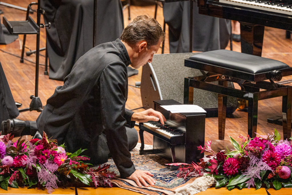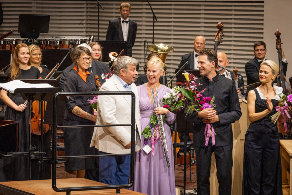 Koncertā pasaules pirmatskaņojumu piedzīvoja unikālais Artura Maskata Trīskāršais koncerts “Bērnības taureņu dejas” ērģelēm, flautai un klavierēm, ko orķestris izpildīja kopā ar starptautiski pazīstamiem latviešu solistiem – vienu no pasaulē ievērojamākajām solistēm-instrumentālistēm – ērģelnieci Ivetu Apkalnu, atpazīstamāko Latvijas flautisti Ditu Krenbergu un dziļo un pārdomāto interpretāciju meistaru – pianistu Reini Zariņu.