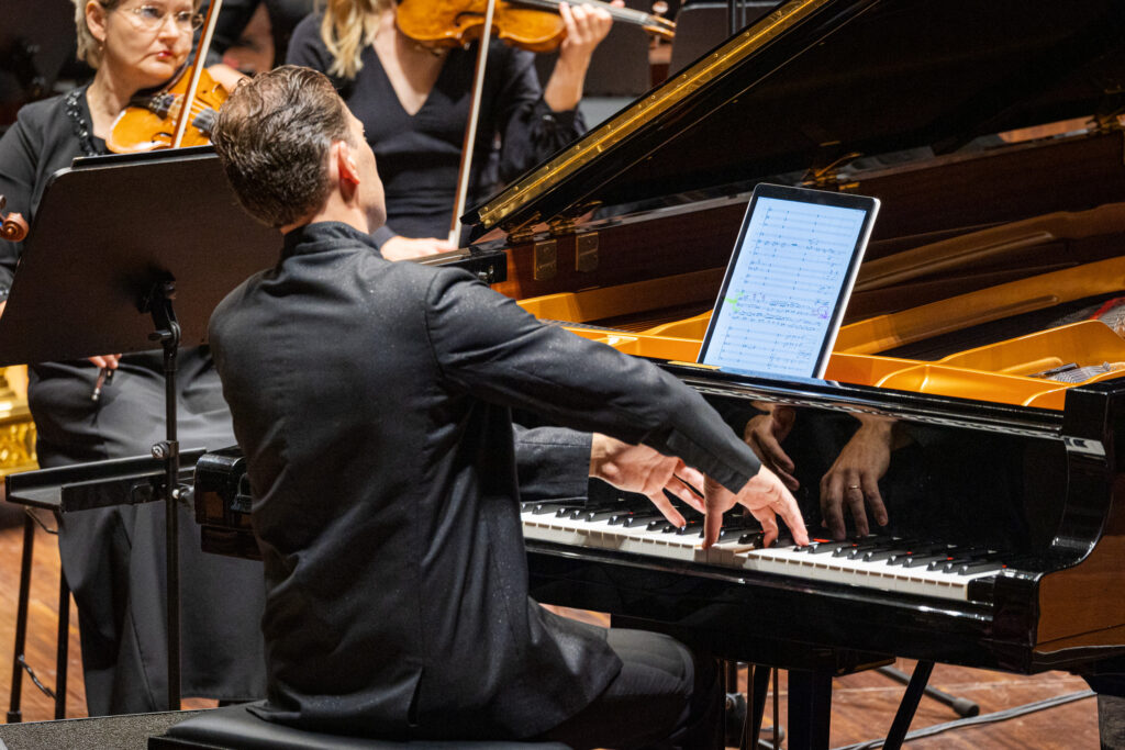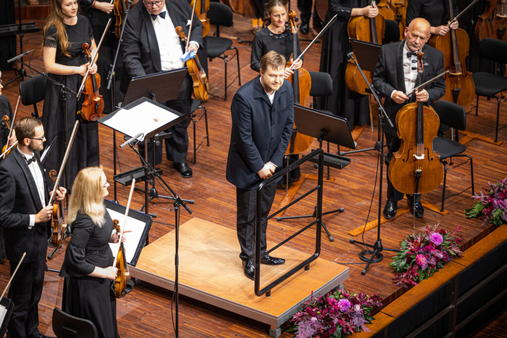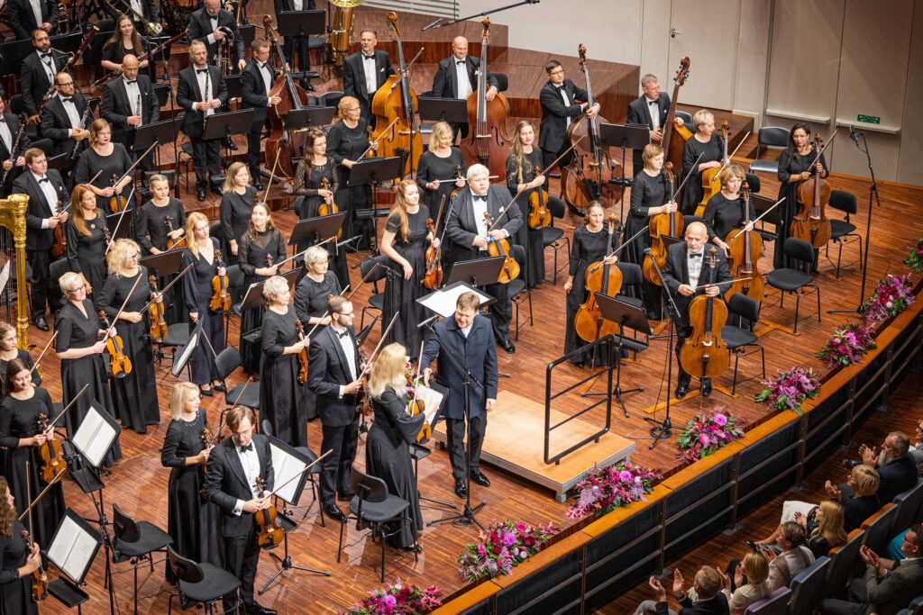 Krāšņais sezonas atklāšanas koncerts iesākās ar Jura Karlsona opusa “El Cid. Dzīves un nāves dejas” atskaņojumu, bet noslēgumā publika baudīja paša diriģenta izveidoto svītu no Sergeja Prokofjeva slavenā baleta “Romeo un Džuljeta”.