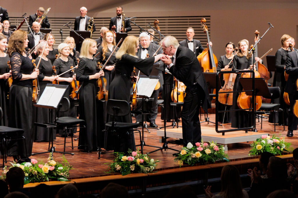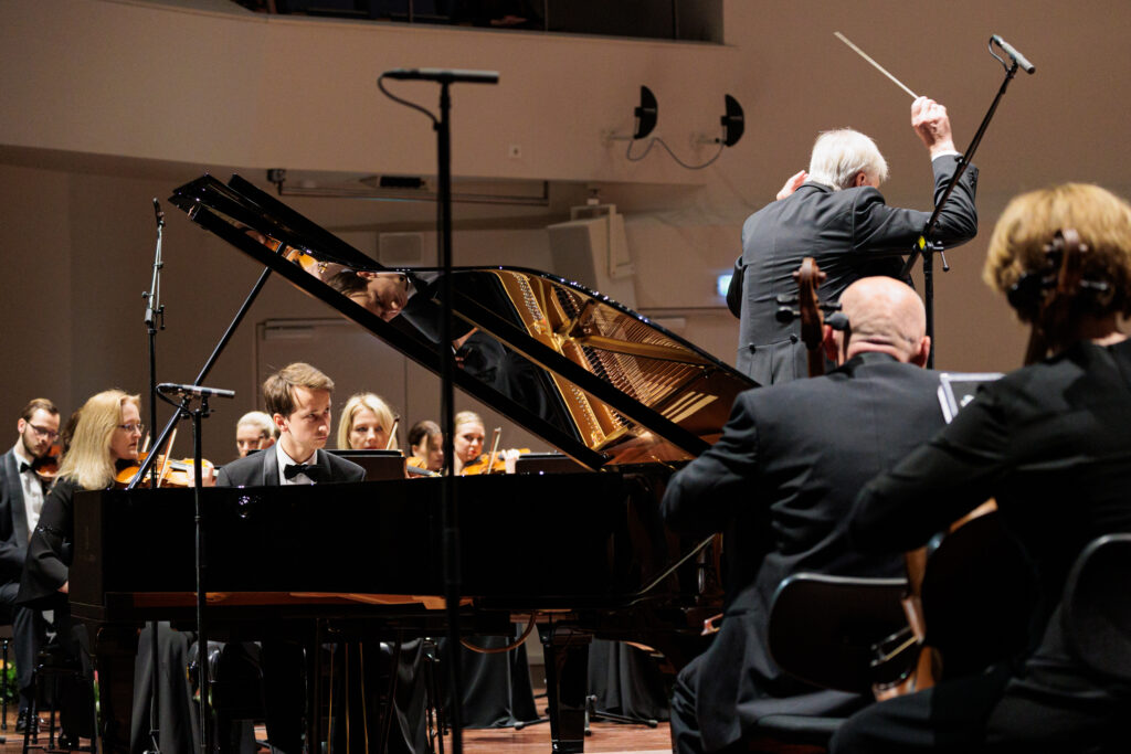 Koncertā varēja baudīt klasiskās mūzikas dižgaru – Antona Bruknera un Sergeja Prokofjeva mūziku, kas joprojām vienlaikus tiek gan apbrīnota, gan uzskatīta par tehniski ārkārtīgi sarežģītu. Maestro Rinkevičs sezonas noslēgumam bija izvēlējies monumentālo Bruknera Trešo simfoniju, kas saukta arī par Vāgnera simfoniju, un tehniski izaicinošo Prokofjeva Otro klavierkoncertu, kur briljantu virtuozitāti pie klavierēm rādīja Daumants Liepiņš.