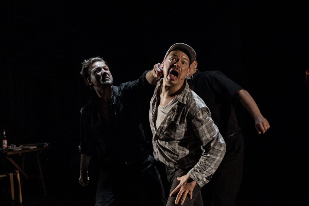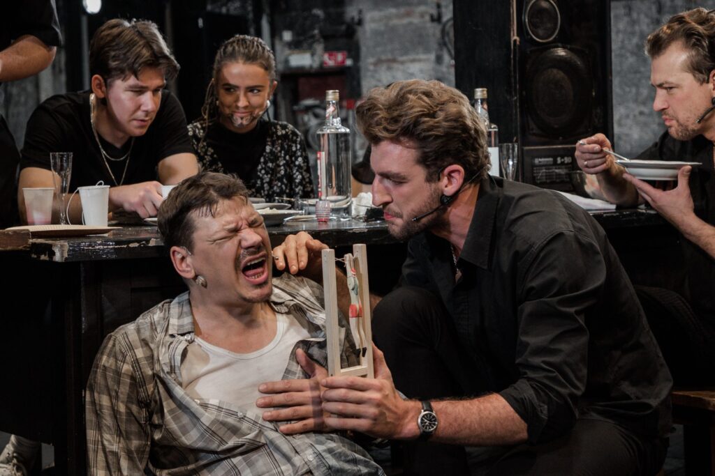 Izrādē piedalās aktieri Herberts Laukšteins, Hugo Puriņš, Madara Kalna, Ilze Trukšāne, Mārtiņš Kalita, Kaspars Kārkliņš, Signe Dancīte, Egons Dombrovskis, Armands Kaušelis, Agnese Jēkabsone, Karīna Tatarinova, Everita Pjata-Gertnere, Agnija Dreimane un Kārlis Artejevs.