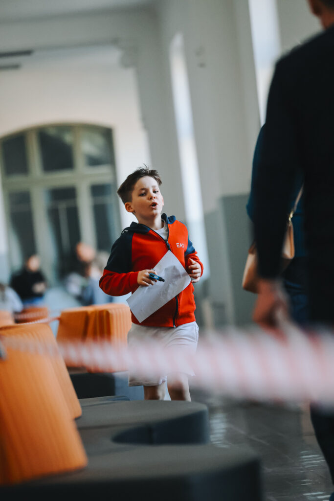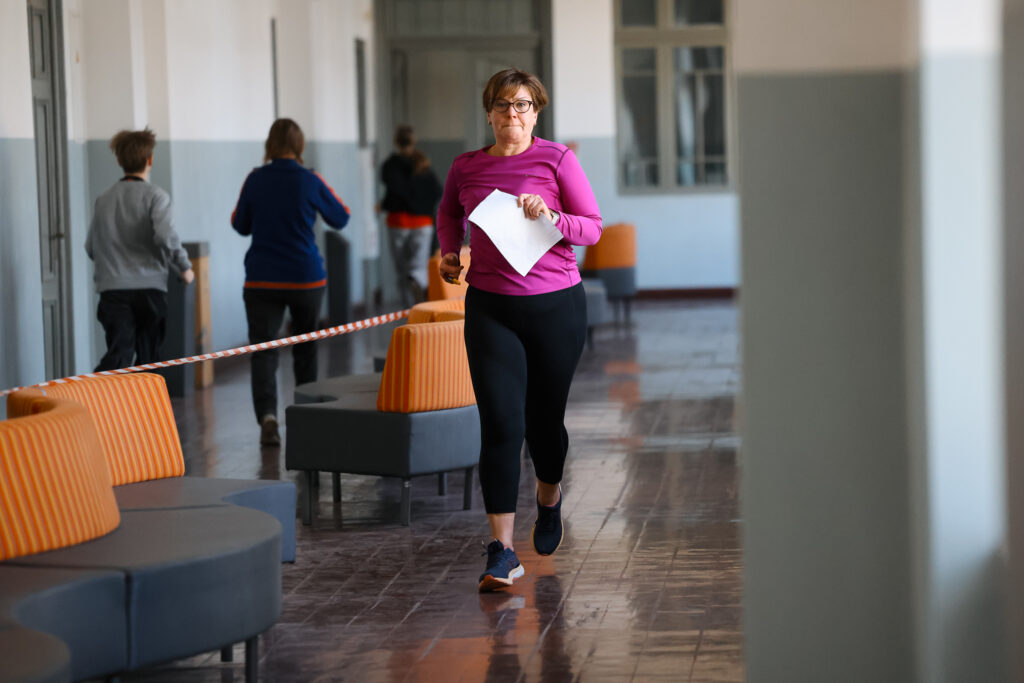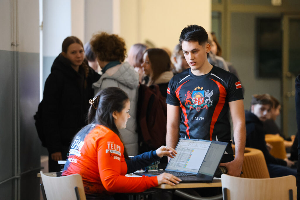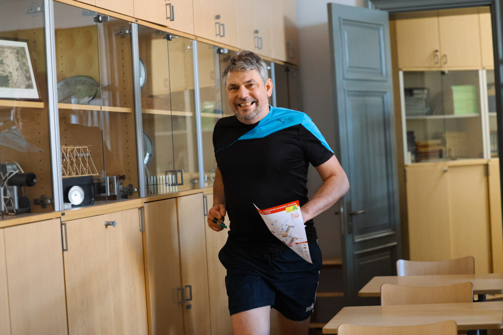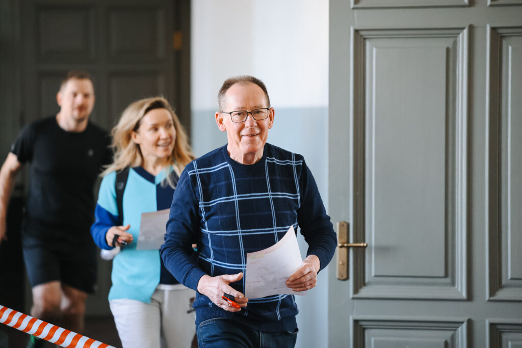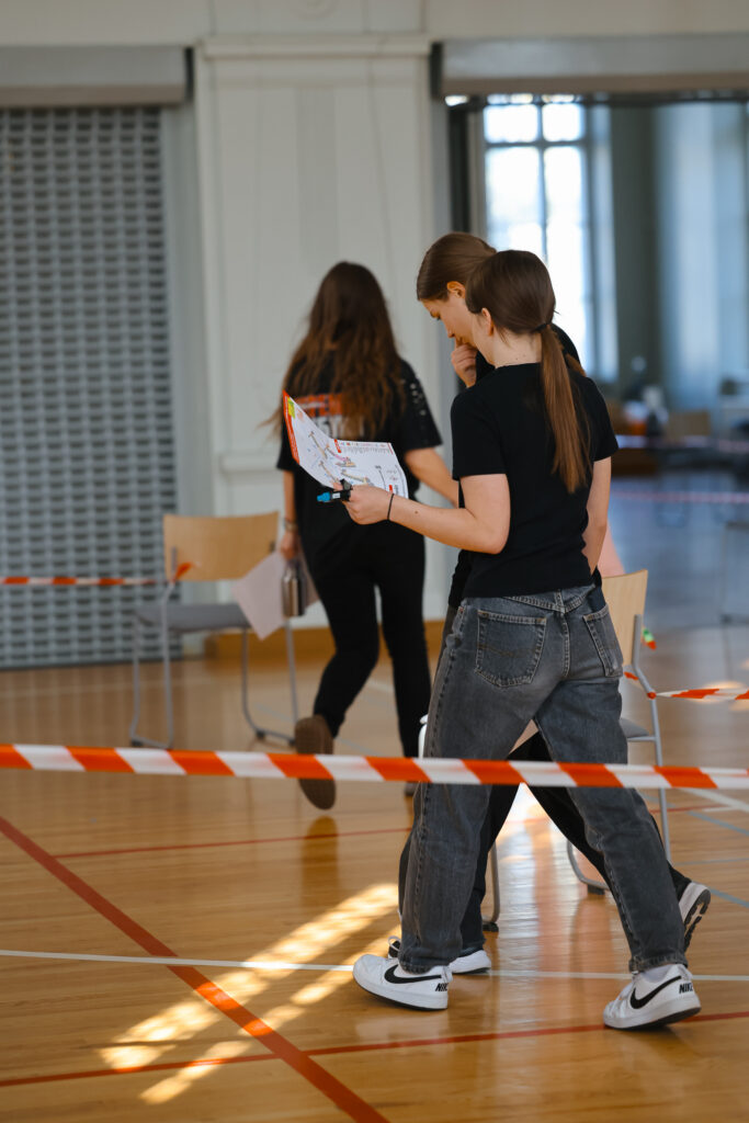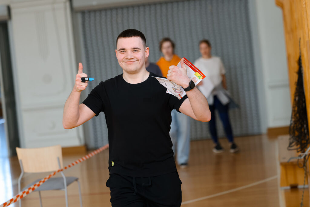 FOTO: Liepājas Valsts ģimnāzijā azartiski sacenšas telpu orientēšanās sacensībās
