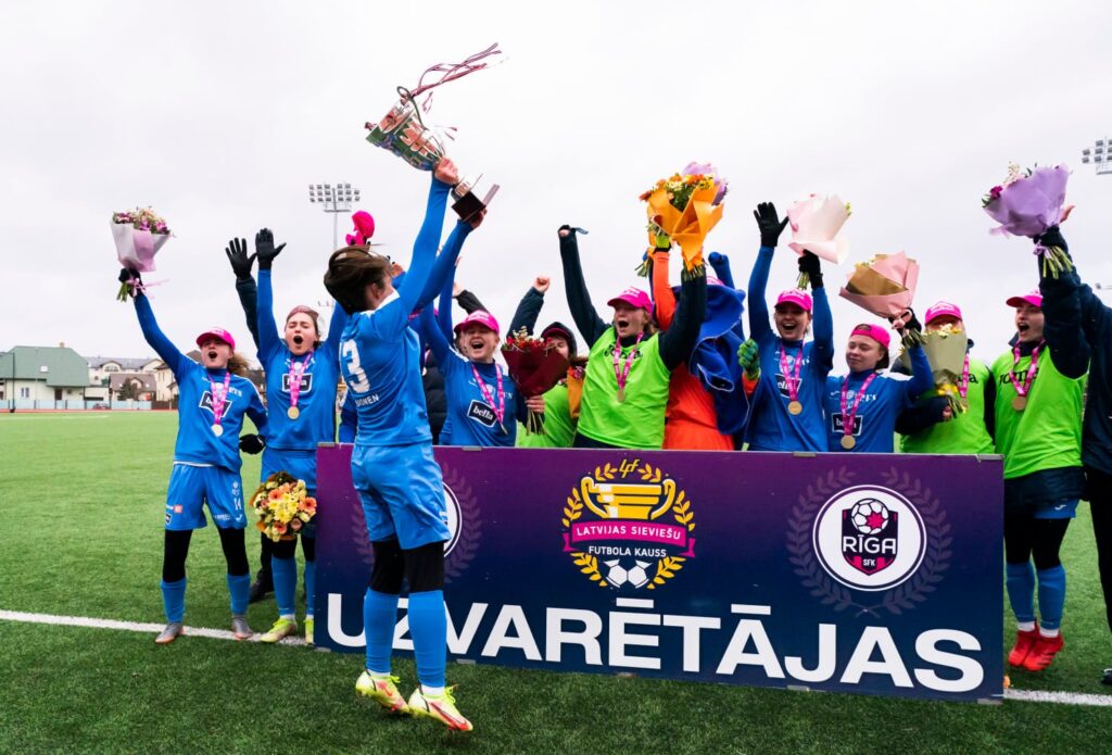 “Rīga” futbolistes sestdien Salaspilī triumfēja Latvijas kausa izcīņā sievietēm, vēsta Latvijas Futbola federācija (LFF).