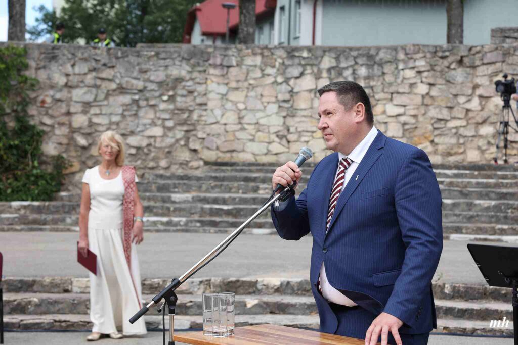 Viņš pauda gandarījumu, ka ir padarītas daudzas lietas valsts aizsardzības stiprināšanā, tajā skaitā dienestu pabeiguši Valsts aizsardzības dienesta pirmā iesaukuma karavīri.