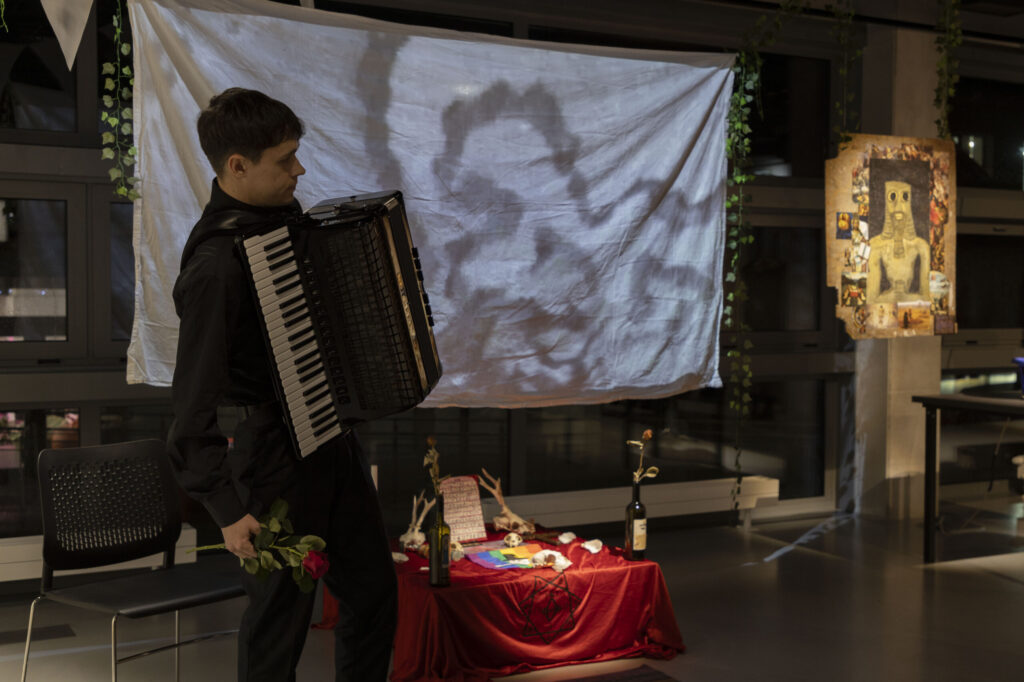 Liepājas Mūzikas, mākslas un dizaina vidusskolas (LMMDV) jaunbūves izstāžu zālē atklāta jauno mākslinieku kustības “apmale93” izstāde, kas līdz 9. decembrim aicina iepazīt jaunās paaudzes skatījumu uz laikmetīgo kultūrtelpu – drosmīgu, daudzslāņainu un neparedzamu.