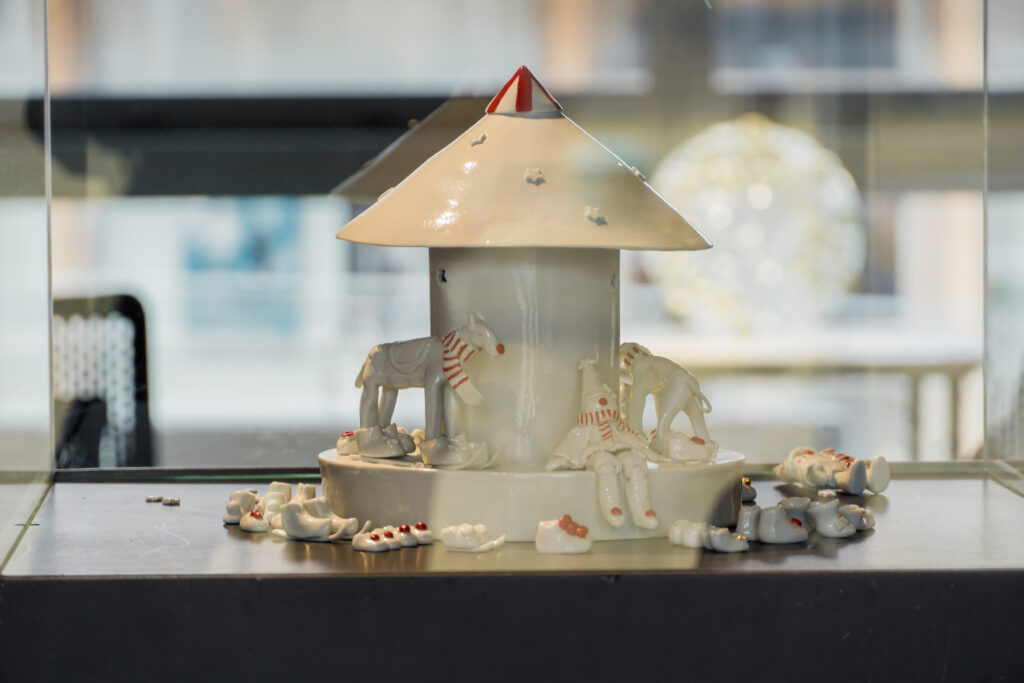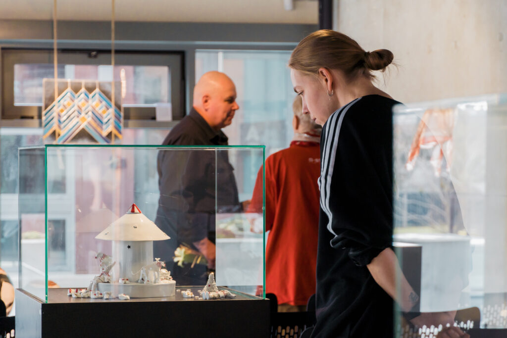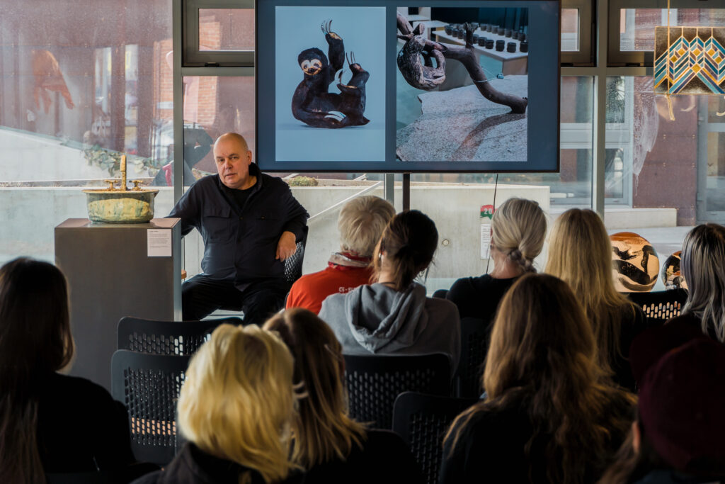 Izstādes kuratore: Vineta Groza. Darbu autori: Latvijas Mākslas akadēmijas Keramikas, Tekstilmākslas un Stikla mākslas katedru vadītāji Dainis Lesiņš, Agnese Gedule, Elīna Ģibiete.