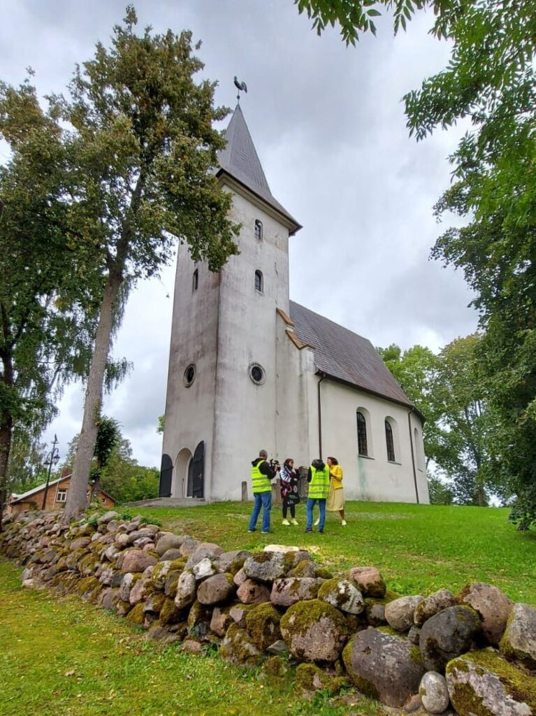 Fotoieskats, kad raidījuma “Ar kājām pa mājām” filmēšanas komanda 6. septembrī viesojās Priekulē.
