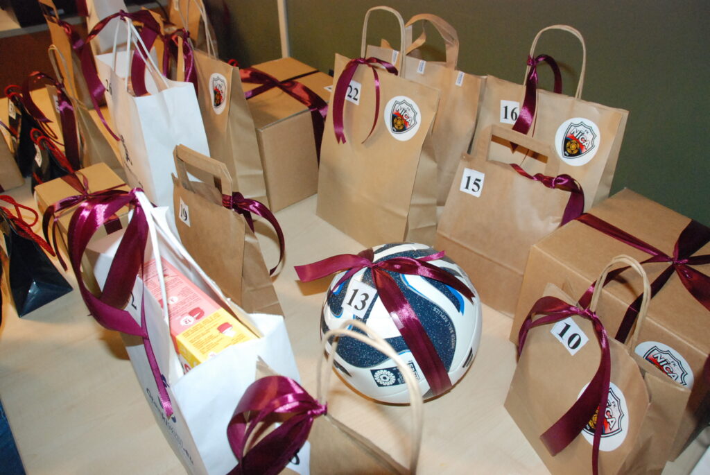 Sestdien spēles pārtraukumā daudzi līdzjutēji loterijā tika pie kluba atbalstītāju sagādātajām balvām.