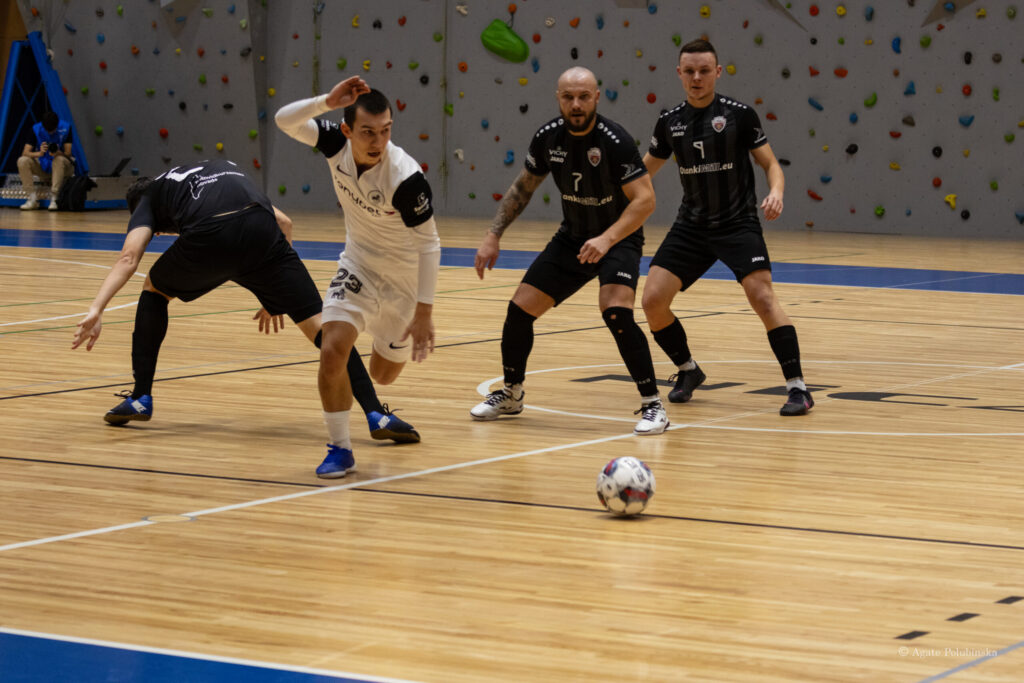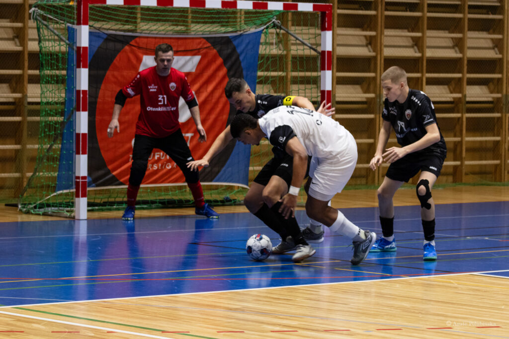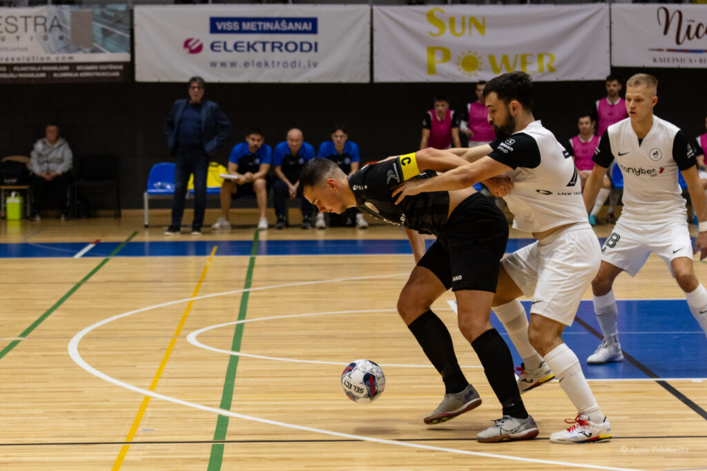 Otrā puslaika sākumā pretinieki (Tomič) saņem noraidījumu, taču mājiniekiem neizdodas izmantot vairākumu. Atgriežoties pilnā sastāvā, “RFS Futsal” komanda ātri gūst trīs vārtus, palielinot pārsvaru līdz 0:6. Spēles pēdējās 10 minūtēs rīdzinieki pievieno vēl divus precīzus sitienus, savukārt Pāvels Košeļevs atvaira 10m soda sitienu. Tikai spēles pēdējās sekundēs Daniels Sērmoliņš glābj komandu no “sausā” zaudējuma. Galarezultāts 1:8 “RFS Futsal” labā.