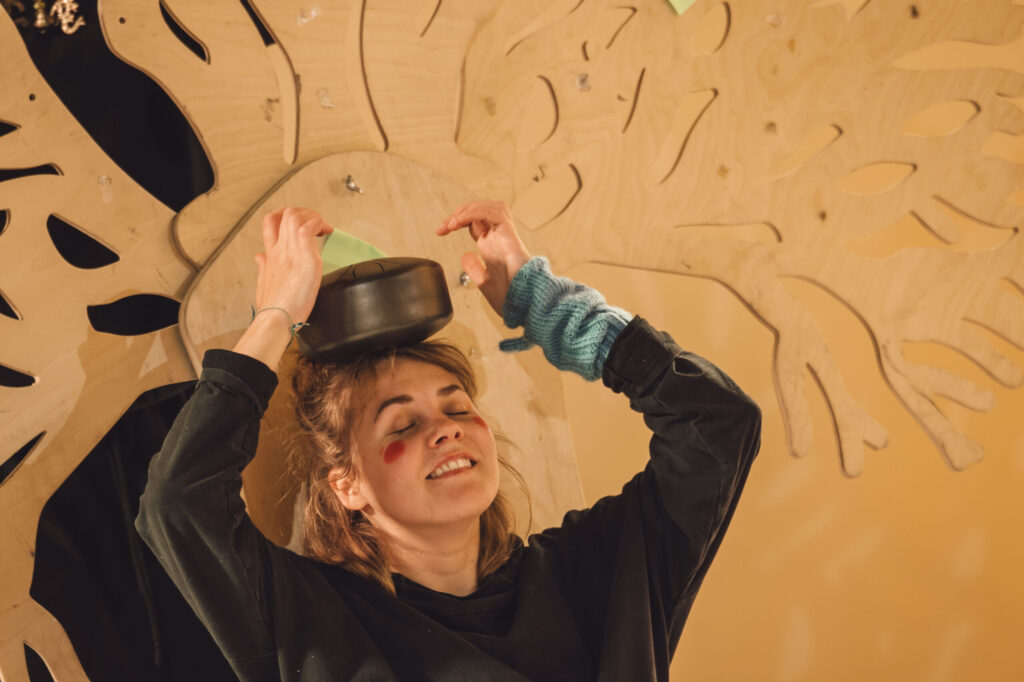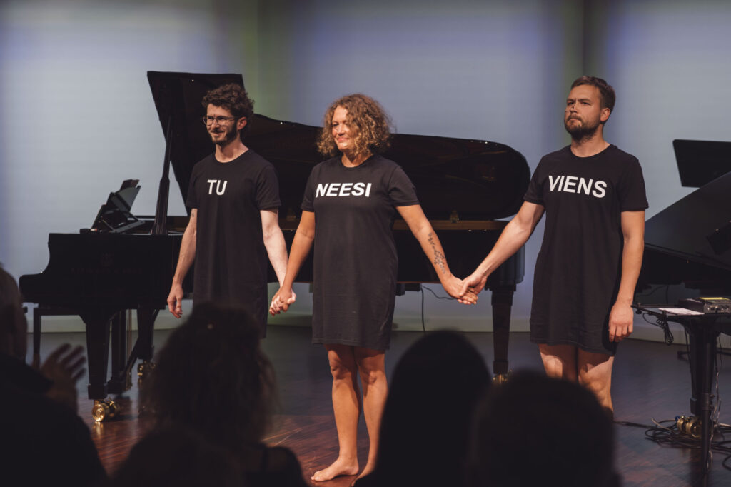 Vakara turpinājumā klausītāji devās audiovizuālā meditācijā, skanot Evijas Vēberes ēteriskajiem dziedājumiem senajā budistu pāli valodā un Krista Auznieka mūzikai trio “Art-i-Shock” atskaņojumā. Monoopera “Apzināšanās” balstīta Satipatāna sūtrā (Satipatthana Sutta) un runā par vienu patiesības ceļu dzīvo būtņu attīrīšanai. Šī apzināšanās ceļa ideju pinekļi izvijās arī telpā mākslinieces Katrīnas Neiburgas krāšņajās videoprojekcijās. Sajūtu meklējumi zemos “sakņu” bītos un pārpasaulīgos sabalsojumos turpinājās festivāla atklāšanas ballītē “Pulss”, kur daudzpusīgās mākslinieces Evija Vēbere un Elīna Silova aicināja atbrīvoties improvizētos deju ritmos.