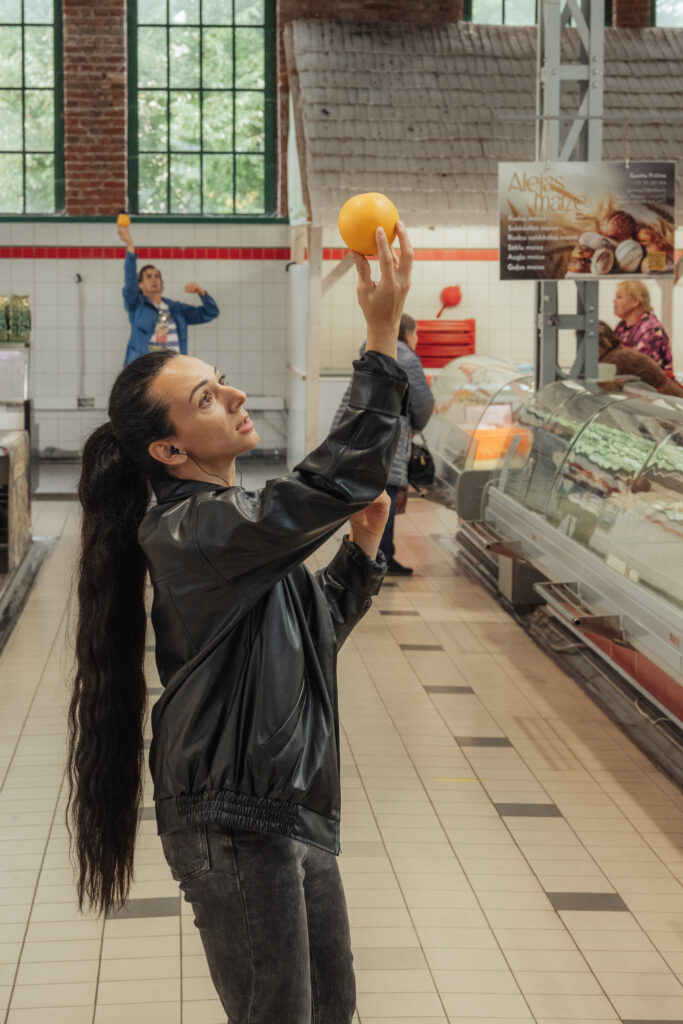 Kā ikkatru gadu, festivāls iziet ārpus “Lielā dzintara” telpām un šogad tas bija liepājnieku iemīļotais Liepājas Pētertirgus, kas kļuva par laikmetīgās dejas skatuvi. Kas bijis Liepājas Pētertirgū pirms simts tūkstošiem gadu? Cik kilogrami kartupeļu šeit tiek piegādāti ik nedēļu? Cik daudz flīžu sedz centrālo paviljonu? Norvēģu un japāņu horeogrāfi Haine Avdāls un Jukiko Šinozaki kopā ar Latvijas mākslinieku apvienību “IevaKrish”, Kristīni Brīniņu un citiem pašmāju dejotājiem šai vietai pielāgoja laikmetīgās dejas izrādi “Aizņemtā ainava”. Tas bija pārsteigums gan ikdienas pircējiem, gan interesanta un pārdomu raisoša pieredze mērķtiecīgajiem apmeklētājiem, kuri mēģināja rast atbildes uz austiņās ierakstīto balsu jautājumiem par šo lokāciju.