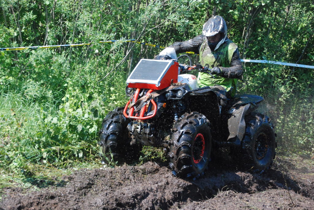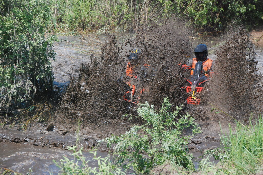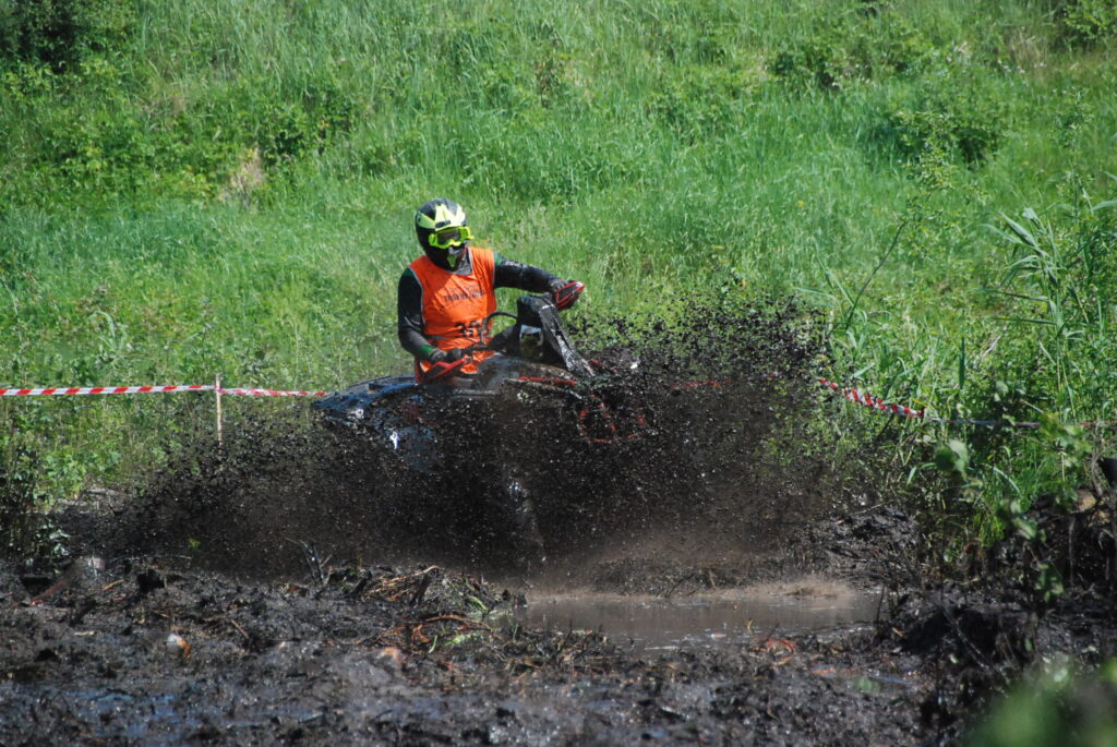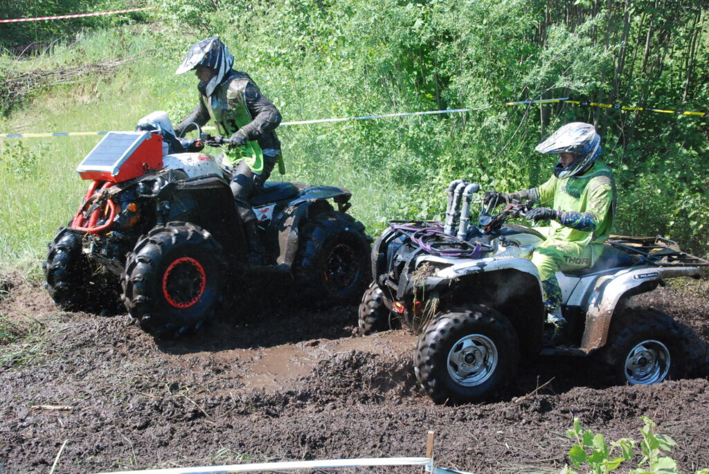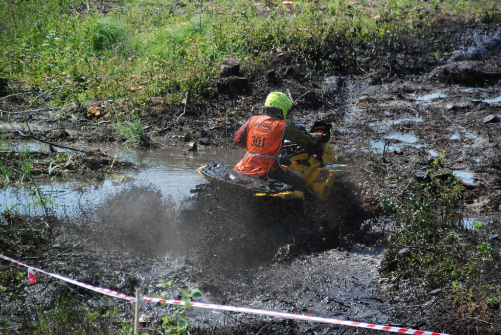 Sestdien, pa ceļam uz Dubeņiem, šosejas malā visas dienas garumā dubļu aplī sacenšas kvadraciklu braucēji dažādās klasēs.