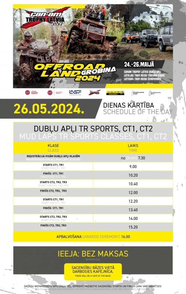 Sestdien, 25. maijā, kad Grobiņā vērienīgi tiek svinēti pilsētas svētki, notiek arī iespaidīgas bezceļu spēkratu sacensības “OffroadLand Grobiņa 2024”.