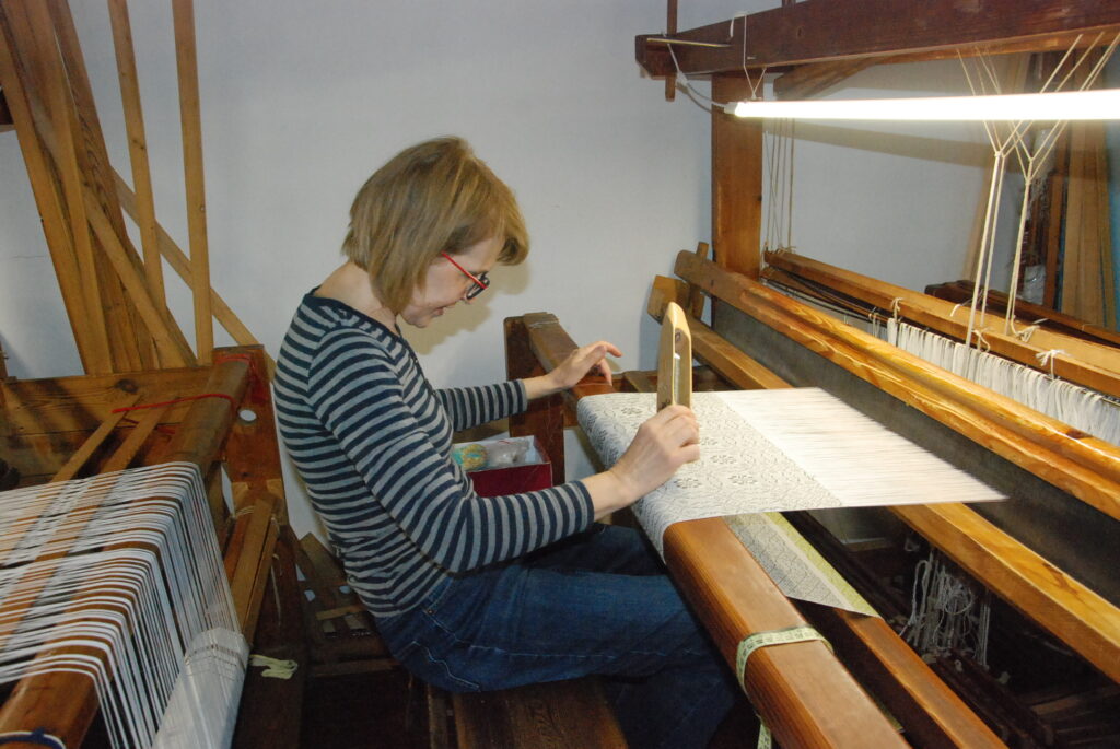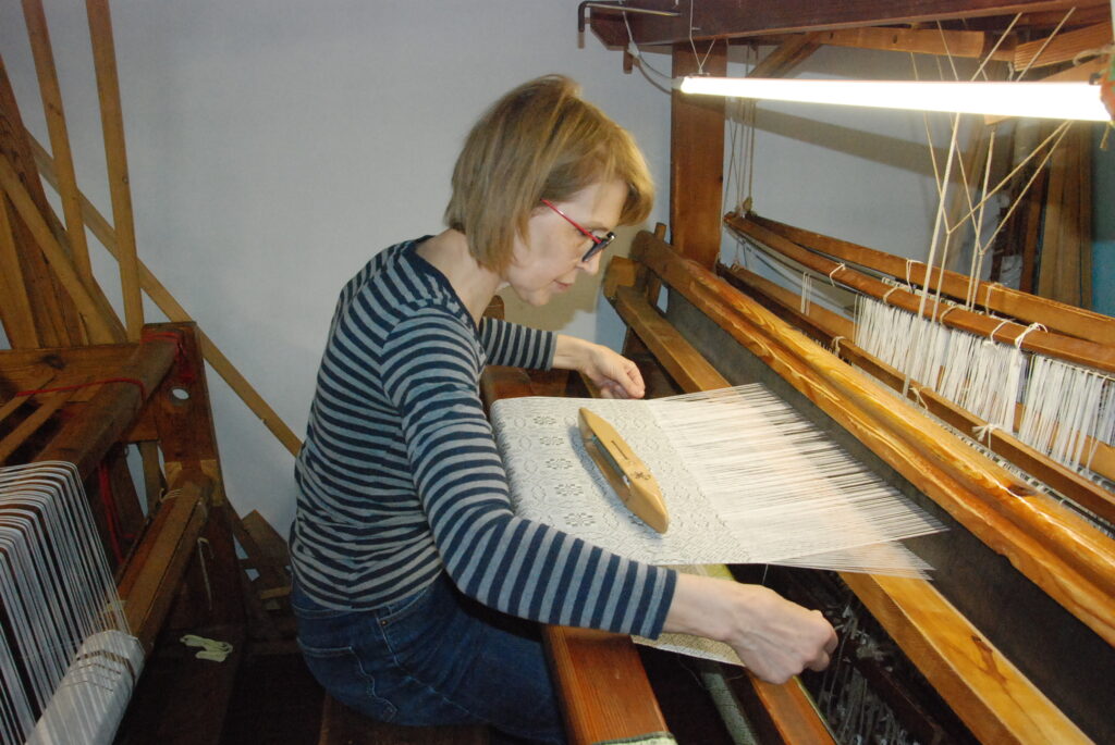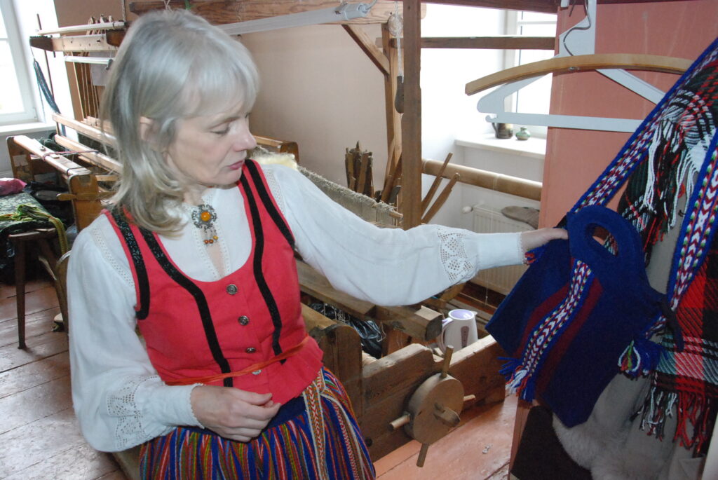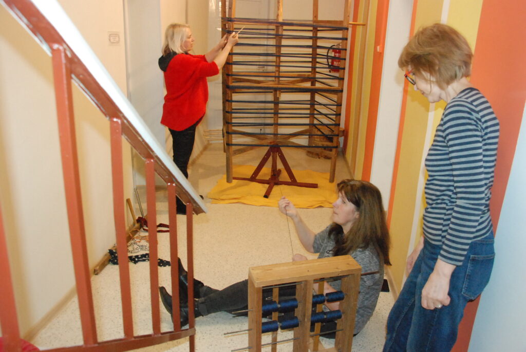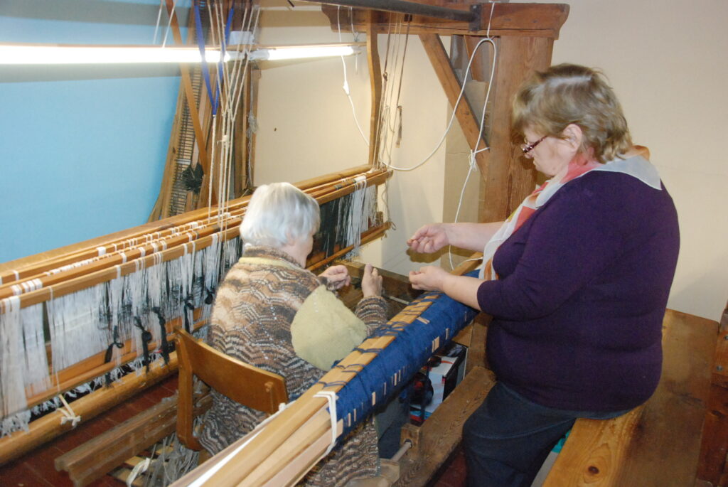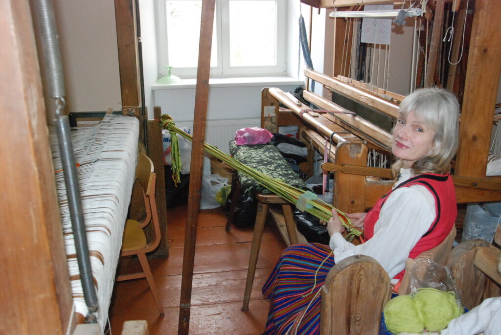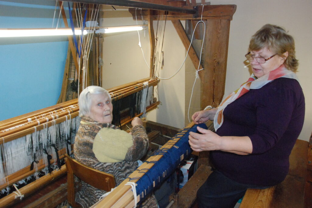 Studijas “Aizputes kamolītis” dalībnieces pasākuma “Satiec savu meistaru!” laikā demonstrēja aušanas prasmes.