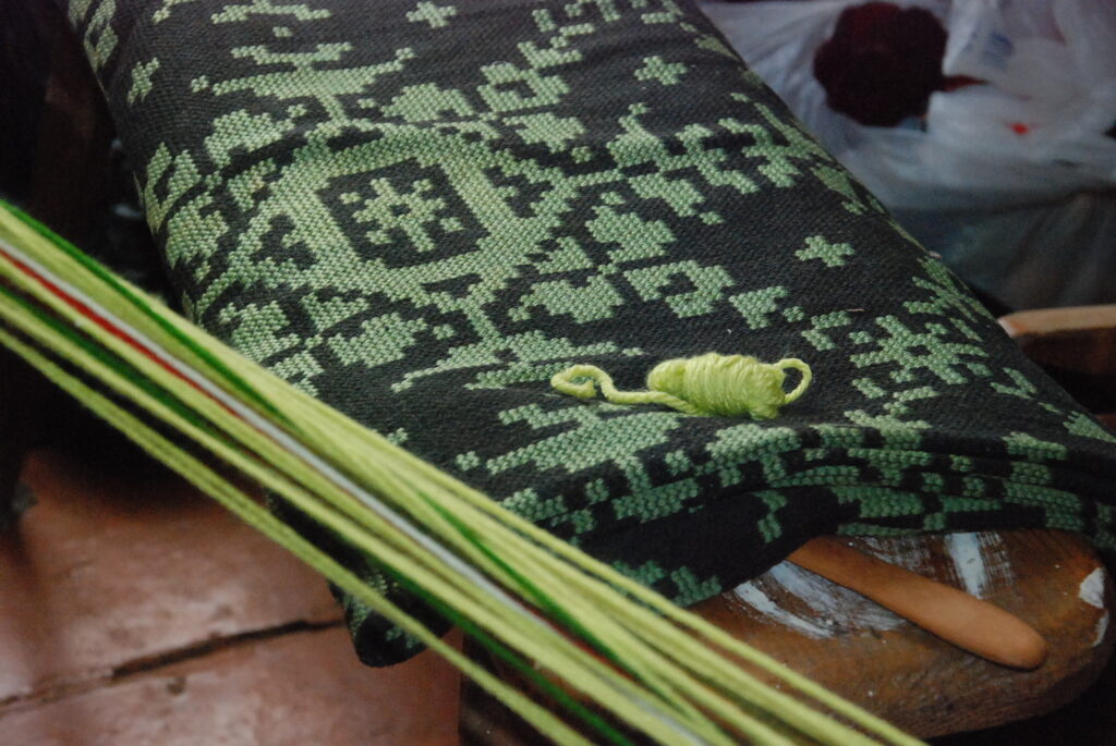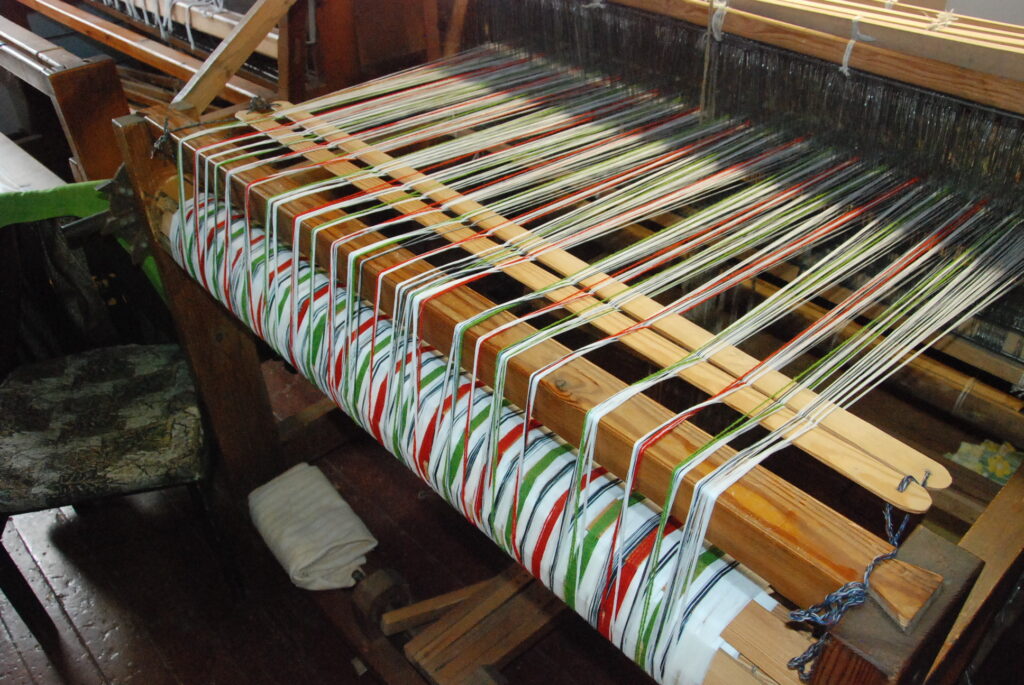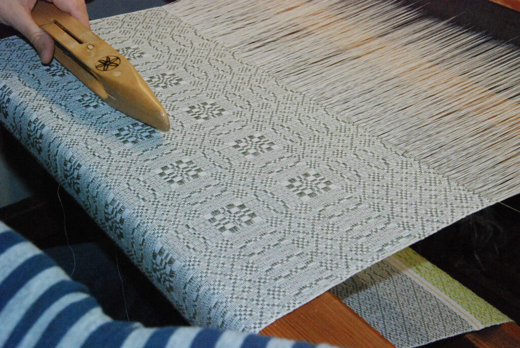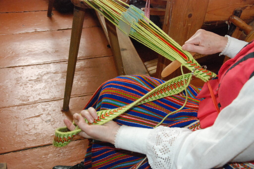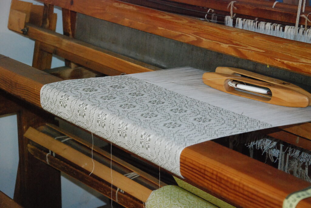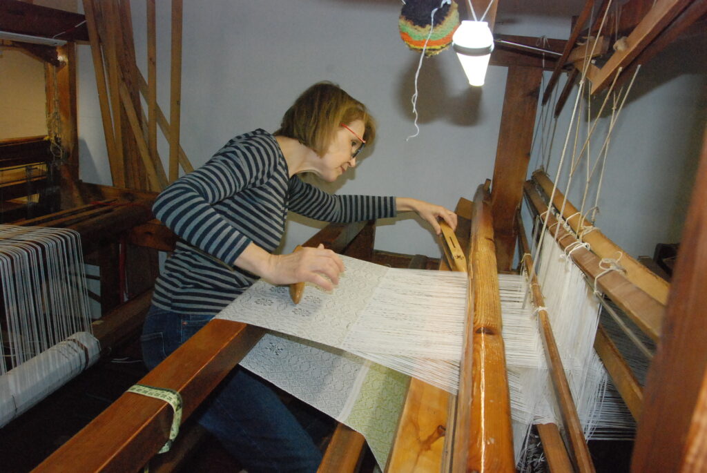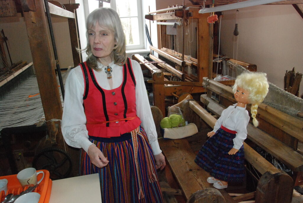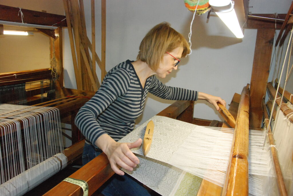 Studijas “Aizputes kamolītis” dalībnieces pasākuma “Satiec savu meistaru!” laikā demonstrēja aušanas prasmes.