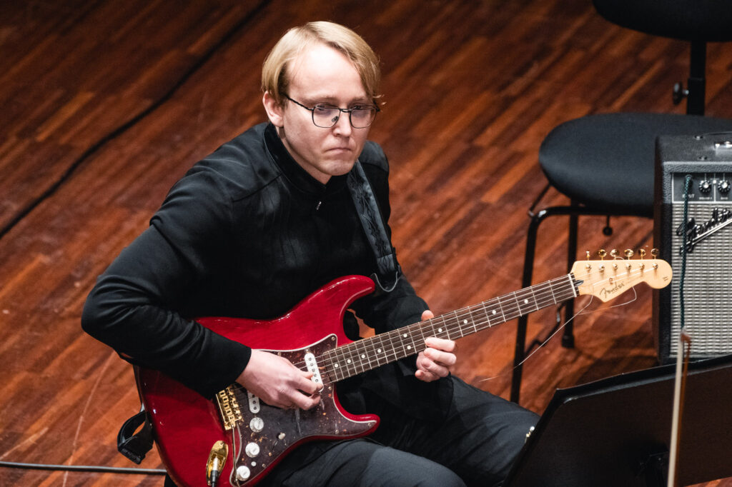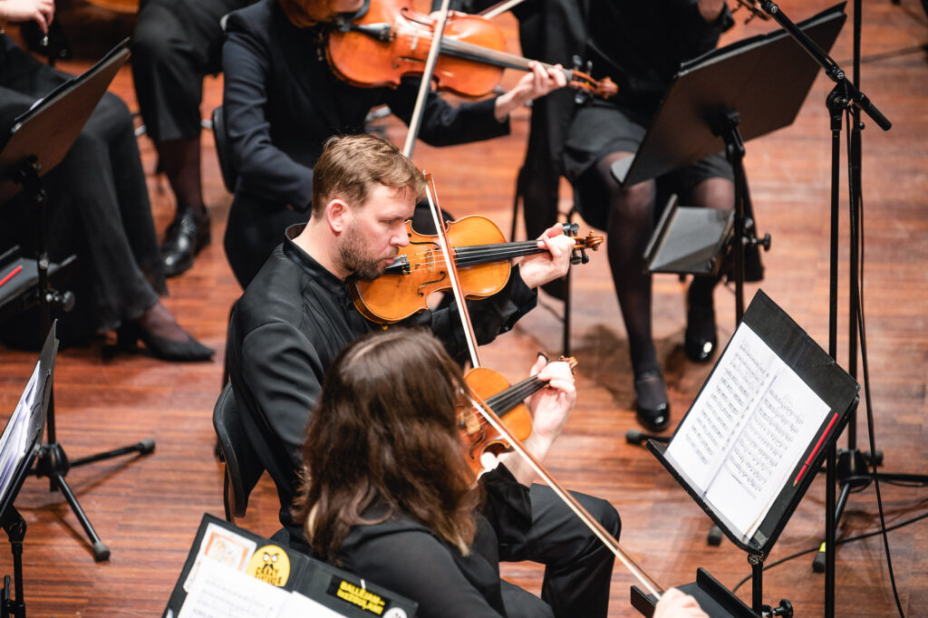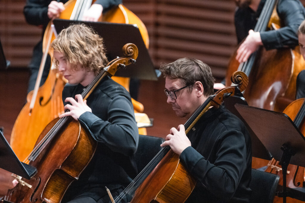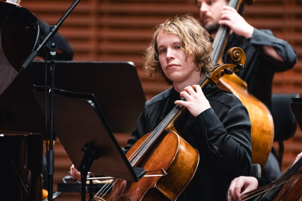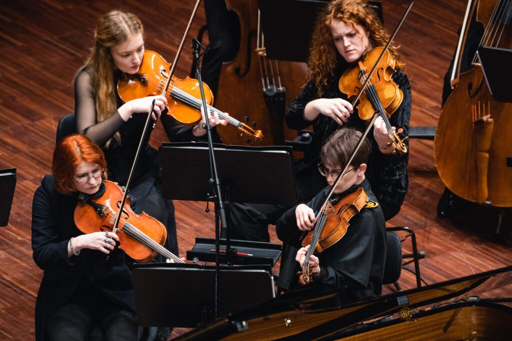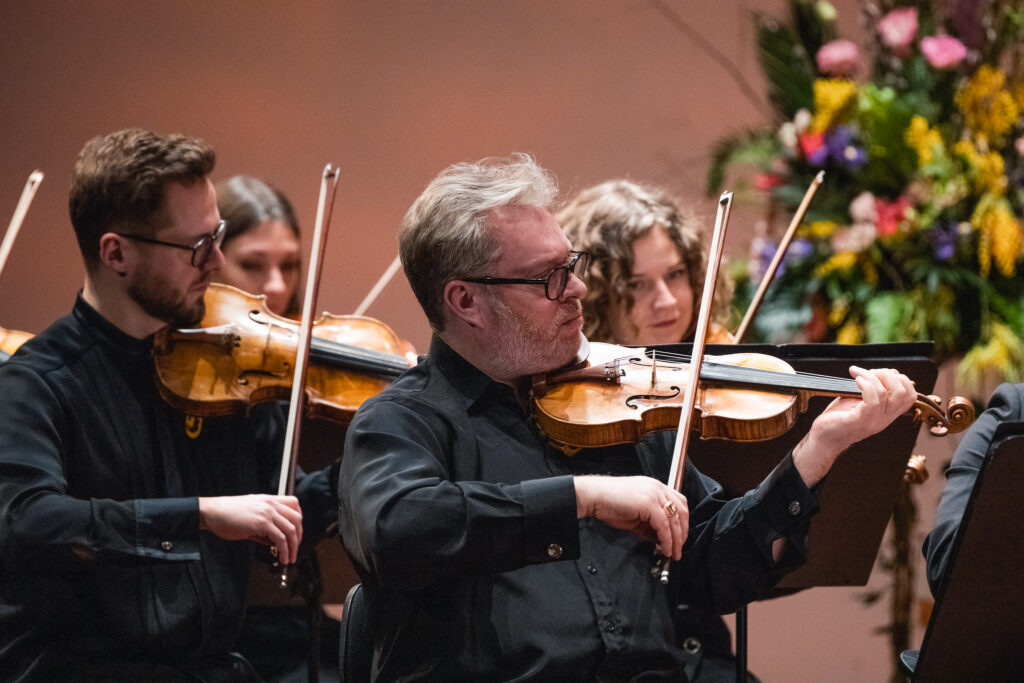 Jaunu strāvojumu orķestra sastāvam piešķīra pianists Adams Kosmeja, kurš melnbaltajos taustiņus ietērpa padomju laika komponista Alfrēda Šnitkes drūmos un vētrainos tēlus “Koncertā klavierēm un stīgām”, aktualizējot cīņu starp tumsu un gaismu un mūžīgos jautājumus par cilvēka eksistenci un dzīves ierobežotību.