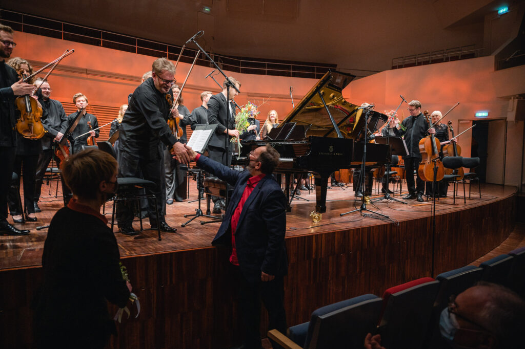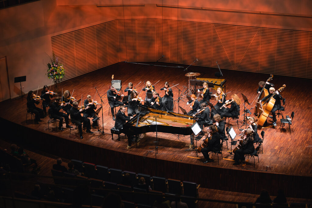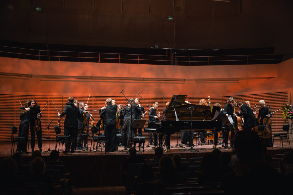 Programmas kulminācijā “Kremerata Baltica” kopā ar Adamu Kosmeju izpildīja sapņaino un dzīvespriecīgo skaņdarbu “Concertino Bianco” klavierēm un stīgām, kam sekoja vētraini klausītāju aplausi un skaņdarba III daļas “Con anima” atkārtojums.