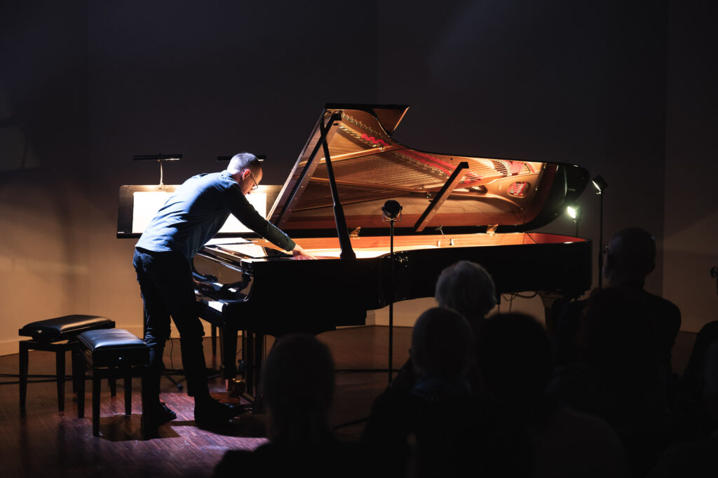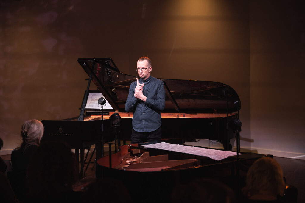 Pianists klausītājus veda ne tikai skaniskā ceļojumā, bet arī izglītojošā pieredzē, pastāstot par 20. gadsimta amerikāņu dižgaru ceļu uz jaunu mūzikas ideju īstenošanu. “Šie komponisti domājuši par skaņu efektiem, par to, kas katram ir iekšienē, un to, kā maksimāli izdabūt skaņu no instrumenta. Tieši viņu radošās darbības pēcgrūdienus mēs varam baudīt arī mūsdienās,” iepazīstināja Žvikovs.