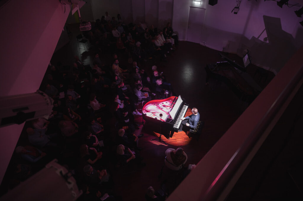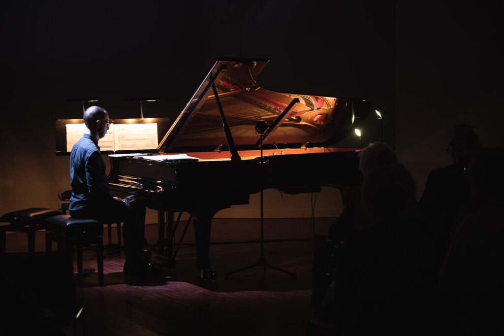 Koncertu atklāja ar eksperimentālās mūzikas “krusttēva” Henrija Kauela daiļradi, kurš mūzikas vēsturē iegājis ar klasteriem un klavieru stīgu izmantošanu savos skaņdarbos. Jura Žvikova virtuozajā izpildījumā skaņdarbā “The Tides of Maunaunan” izskanēja klasteru harmonijas, savukārt klavieru stīgu “vaidēšana”, imitējot īru mitoloģijas garu Banšiju, bija dzirdama darbā “The Banshee”. Tam sekoja aptuveni pēc 50 gadiem sarakstītā avangarda komponista Džordža Krama personīgā mūzikas valoda, kas svārstās no sapņaina miera līdz pārdzīvojumam.