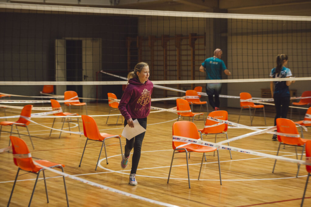 FOTO: Pirmo reizi orientējās Liepājas Olimpiskā centra labirintos