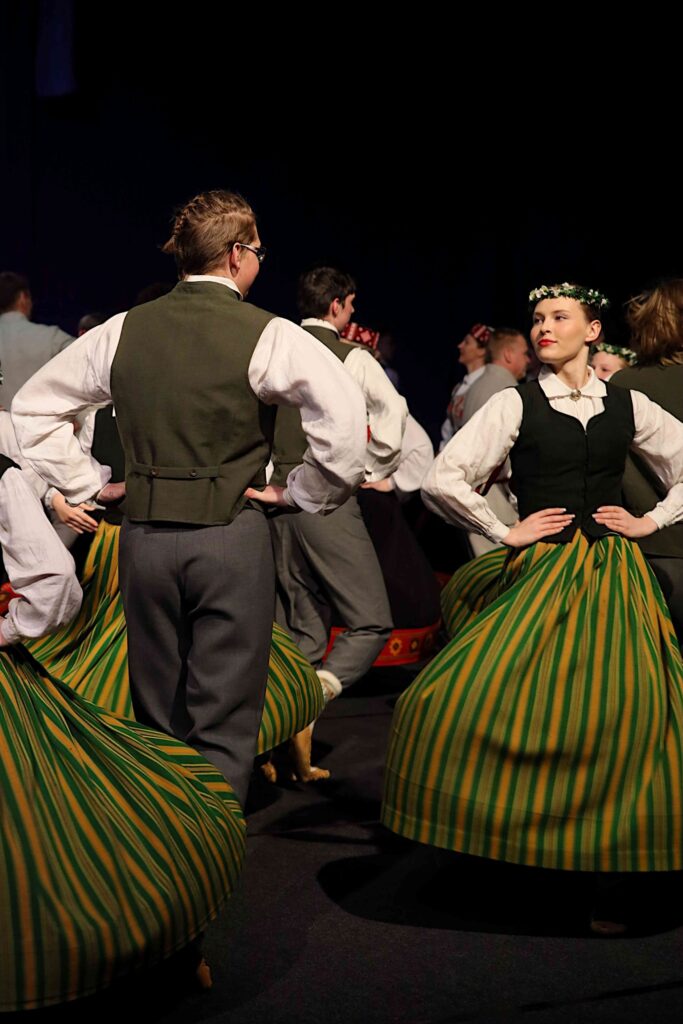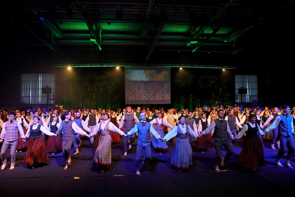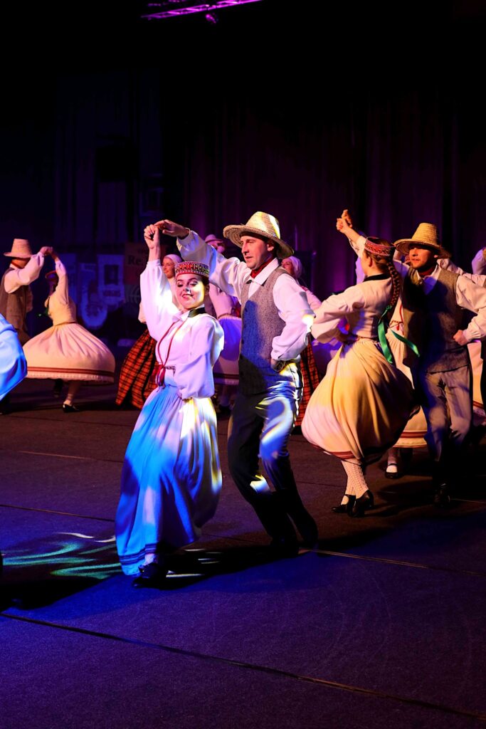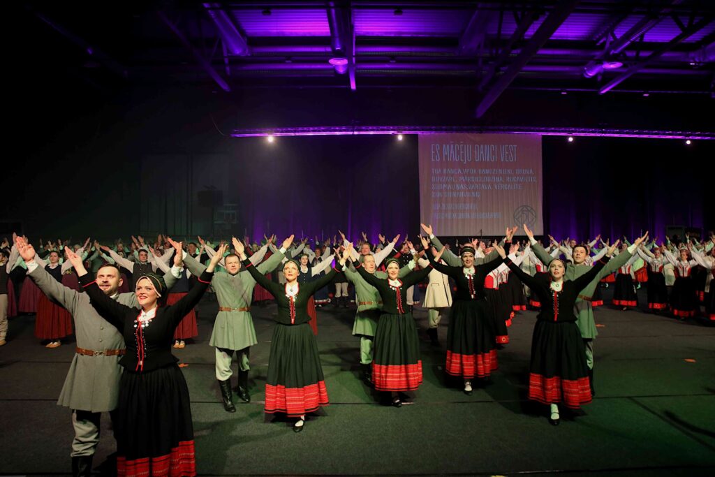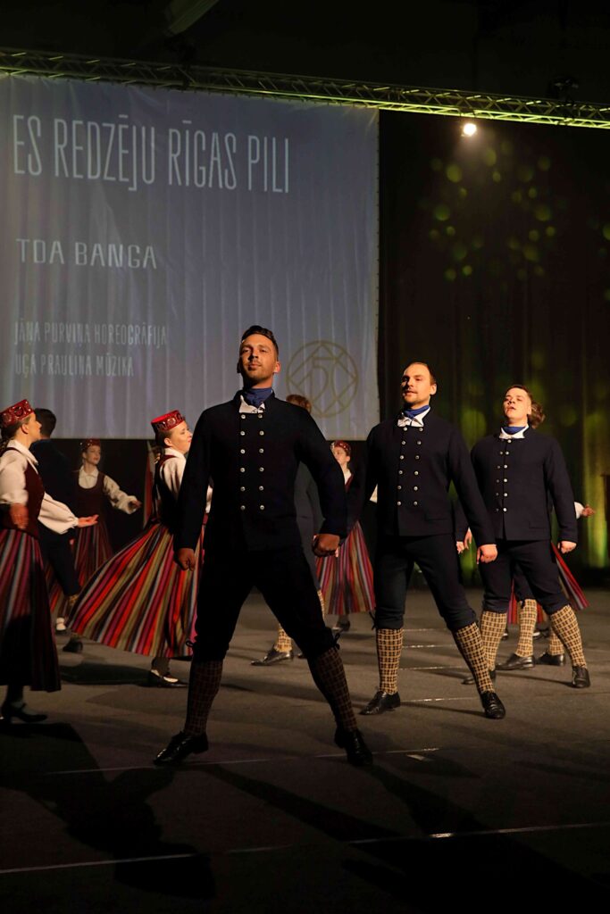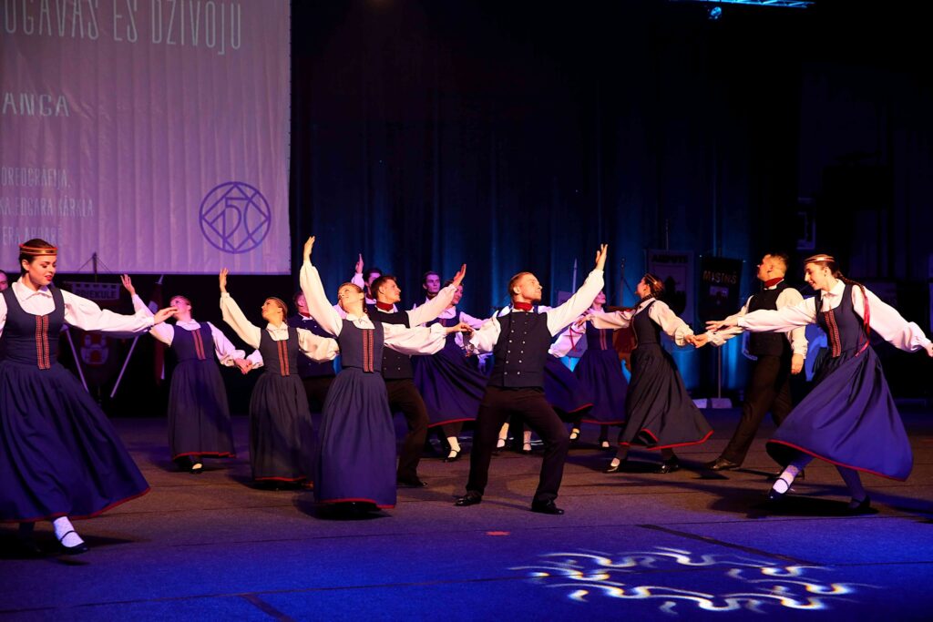 Deju koncerta laikā 25 tautas deju kolektīvi izdejoja koncepcijas autoru un režisoru Madaras Gruntmanes – Dujanas un Kaspara Bērziņa Deju svētku lieluzveduma “Mūžīgais dzinējs” repertuāru un skatuviskās dejas koncerta “Balts” un noslēguma koncerta “Kopā augšup” deju repertuāru, vēsta Dienvidkruzemes novada Kultūras pārvalde.