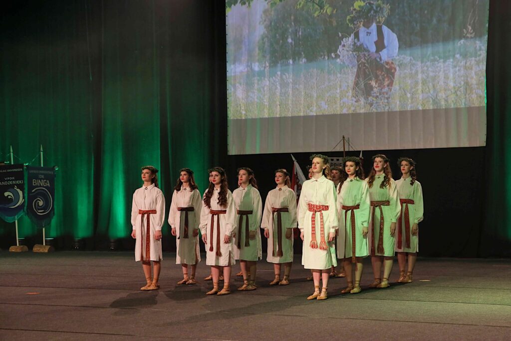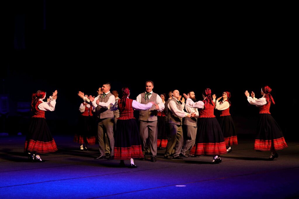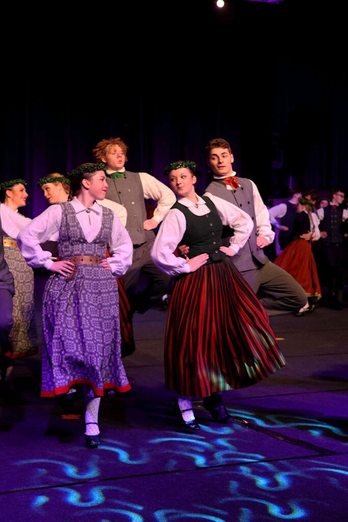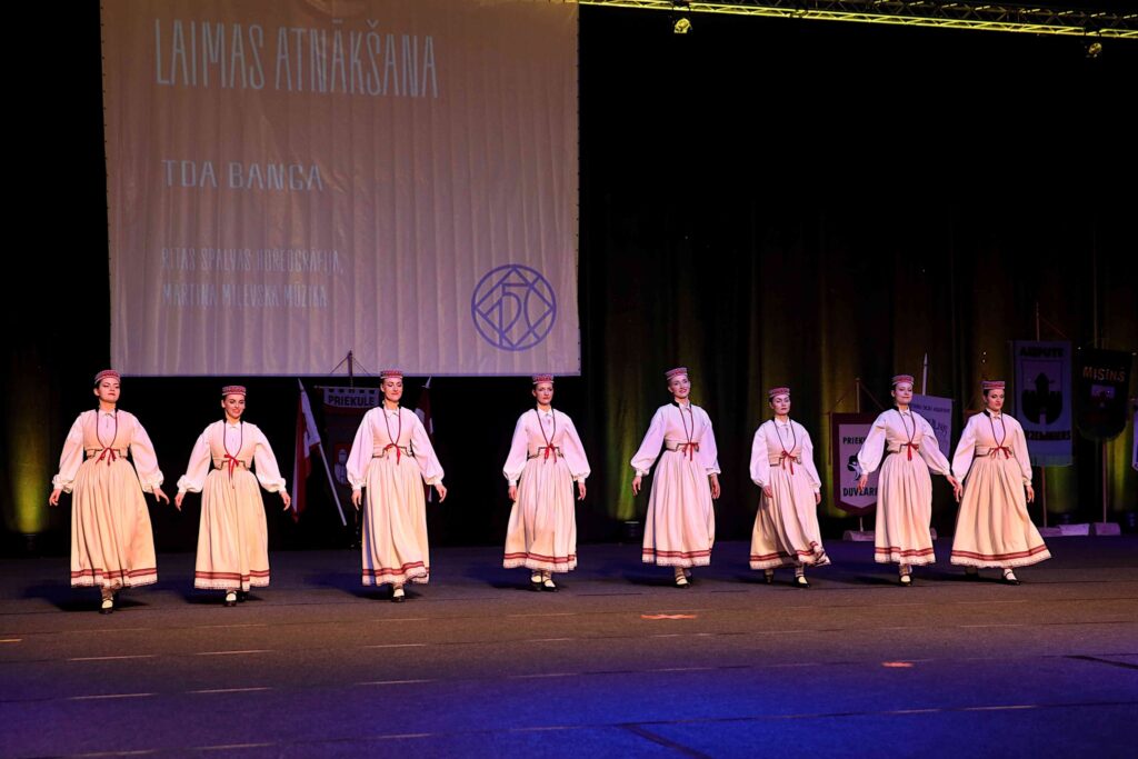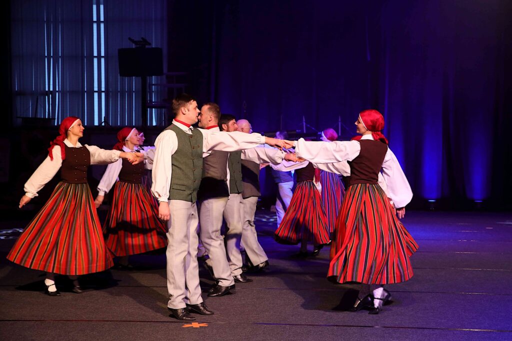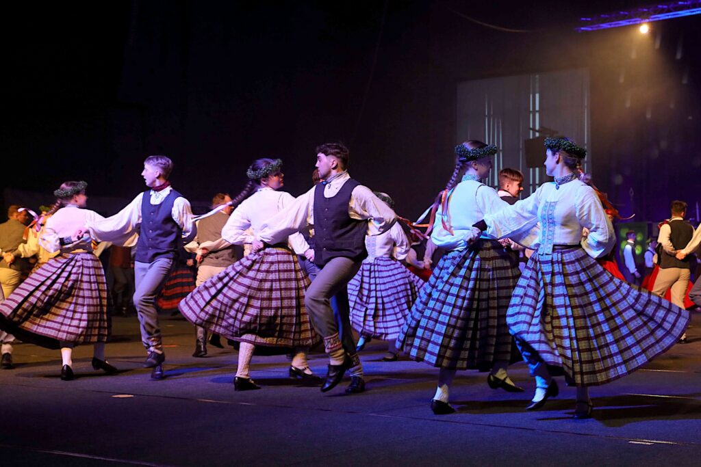 Deju koncerta laikā 25 tautas deju kolektīvi izdejoja koncepcijas autoru un režisoru Madaras Gruntmanes – Dujanas un Kaspara Bērziņa Deju svētku lieluzveduma “Mūžīgais dzinējs” repertuāru un skatuviskās dejas koncerta “Balts” un noslēguma koncerta “Kopā augšup” deju repertuāru, vēsta Dienvidkruzemes novada Kultūras pārvalde.