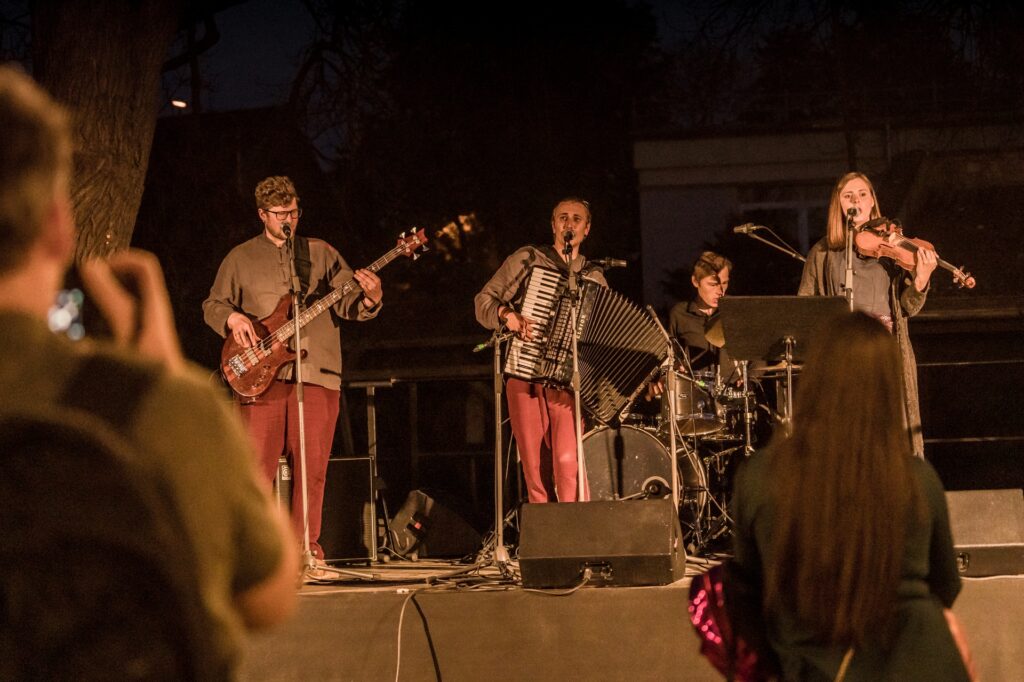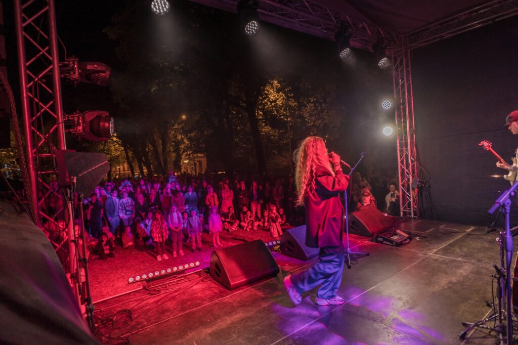 Vakara kulminācijā uz “Muzeju nakts skatuves” Liepājas muzeja dārzā Kūrmājas prospektā 16/18 uzstājās latviešu poproka un elektroniskās mūzikas grupa “Triānas parks”.