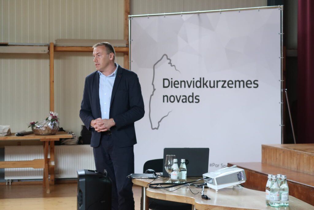 Dienvidkurzemes novada Attīstības un uzņēmējdarbības daļas vadītājs Gints Ločmelis sanākušos iepazīstināja ar pašvaldības atbalstu uzņēmējdarbībai, novada aktualitātēm un projektiem, šīs daļas speciāliste Dace Mieme dalījās ar pasākumu plānu novadā un tuvākā apkārtnē un aicināja interesentus pieteikties dalībai gaidāmajos tirdziņos un izstādēs kā novadā, tā Liepājā un citviet.