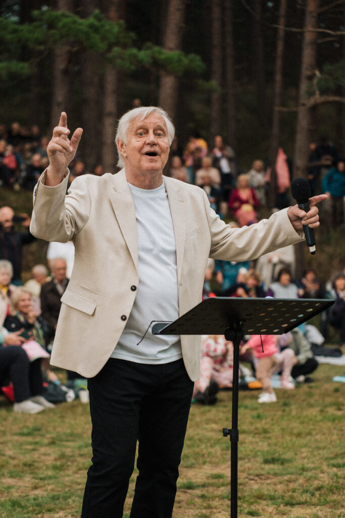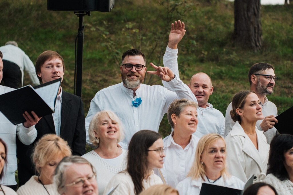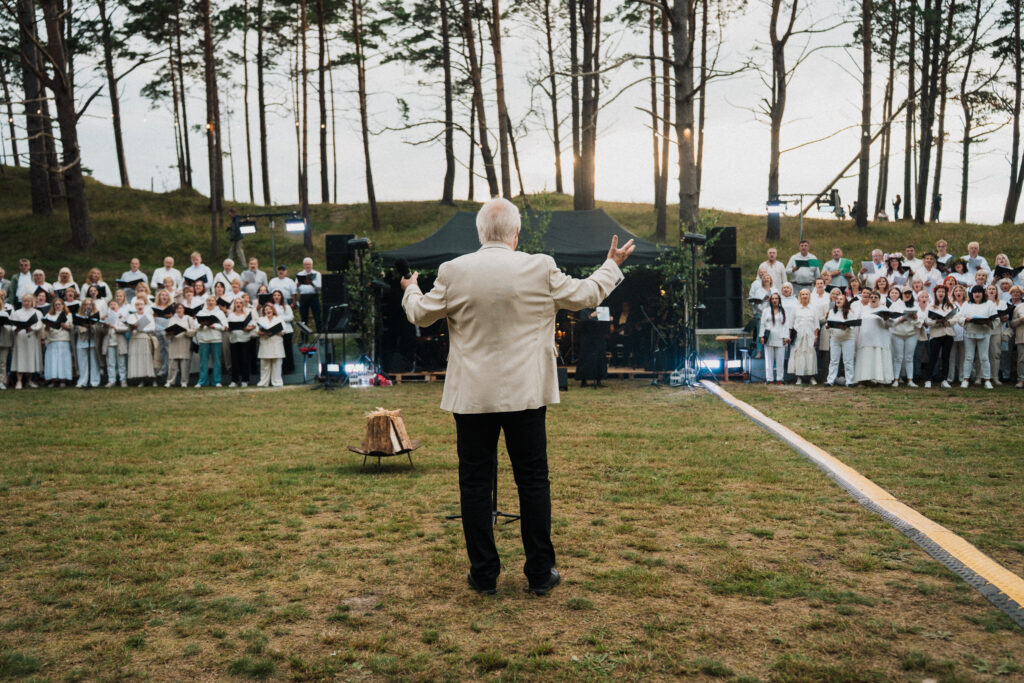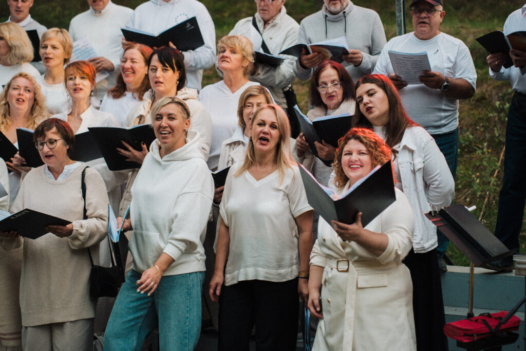 Kopā ap 300 balsu skanēja vienotā skanējumā, aicinot dziedāt līdzi labi zināmām un iemīļotām dziesmām, kā “Kurzeme”, Sanāciet, sadziediet”, “Nepiesauc, nepiesauc”, “Saule, pērkons, Daugava”, izcilā diriģenta un pasākuma mākslinieciskā vadītāja Jēkaba Ozoliņa vadībā, vēsta Dienvidkurzemes novada pašvaldība.