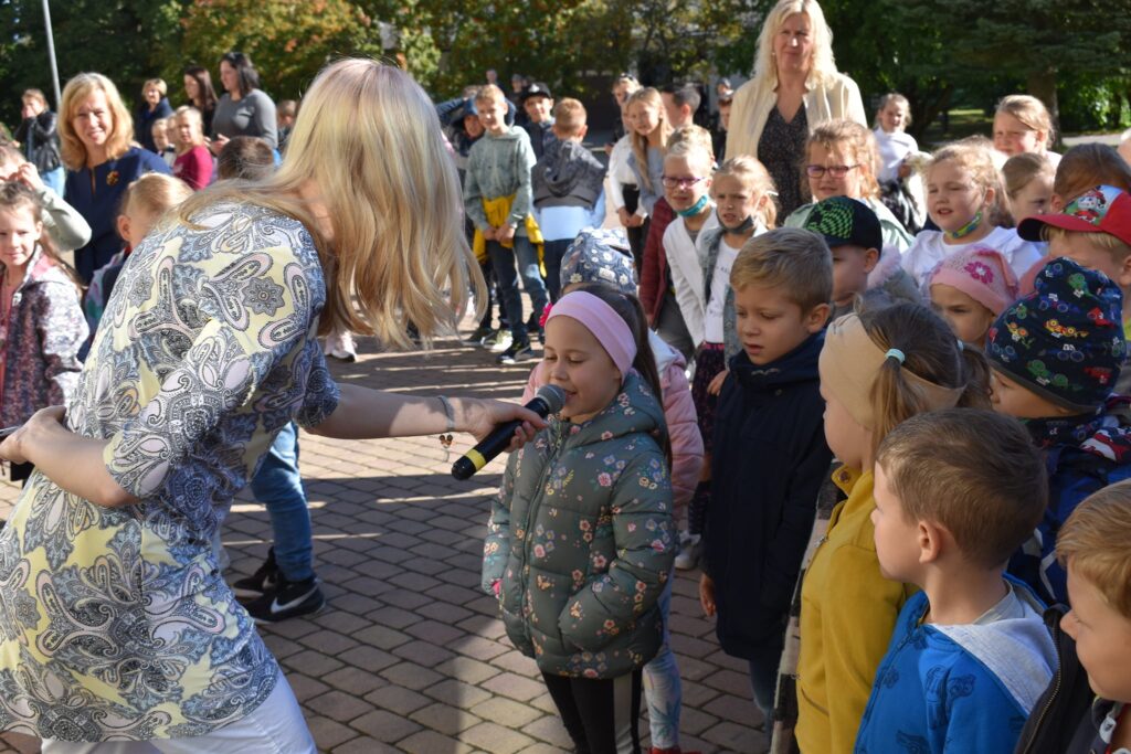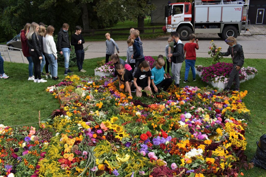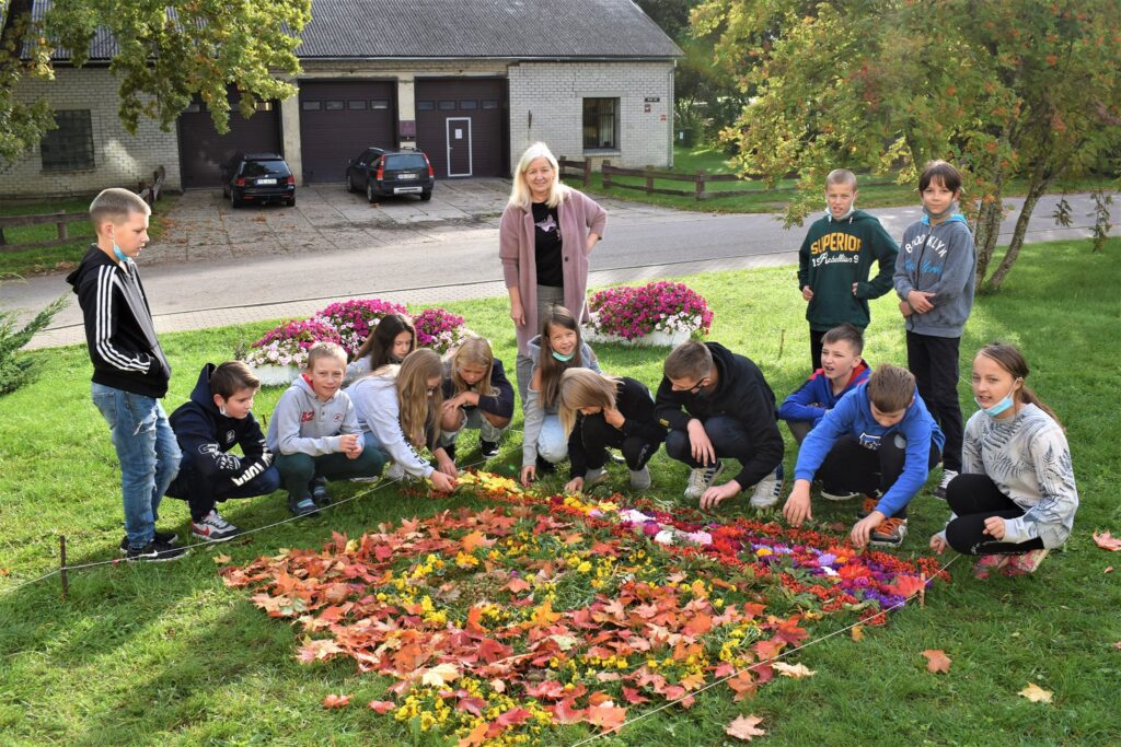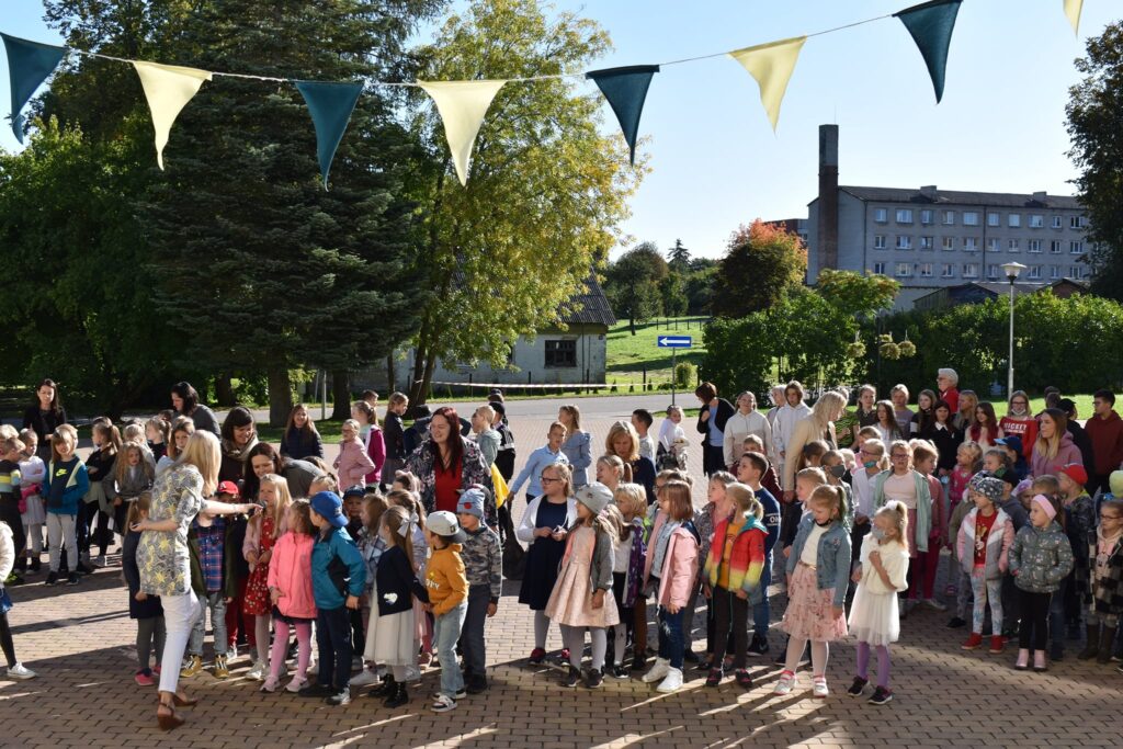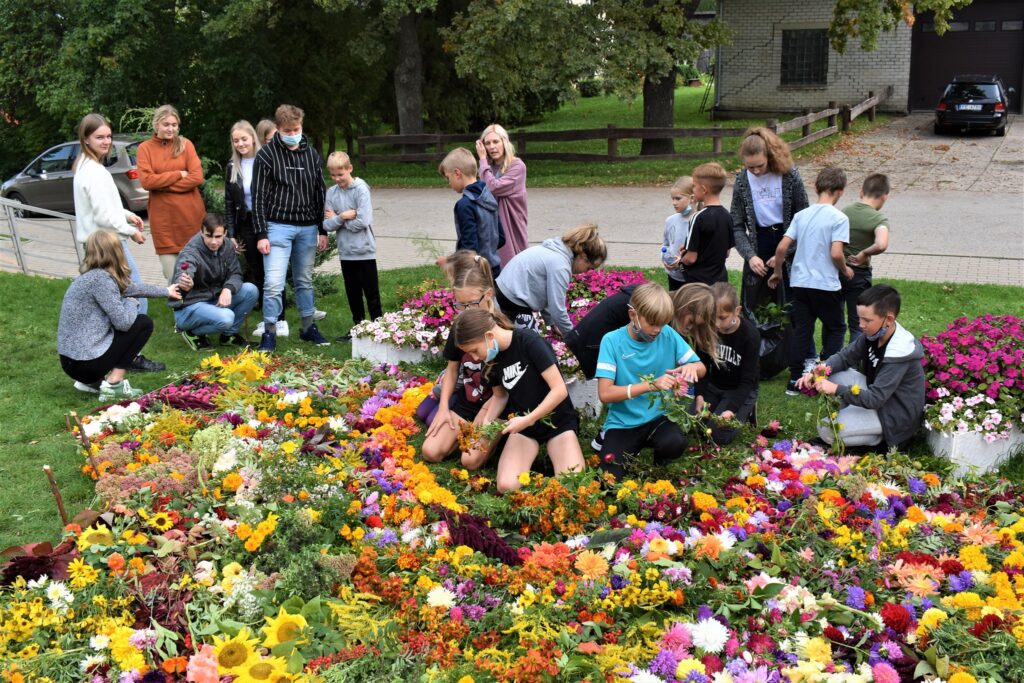 FOTO: Skolēni skaisti rotā Aizputes vidusskolu 100. jubilejā