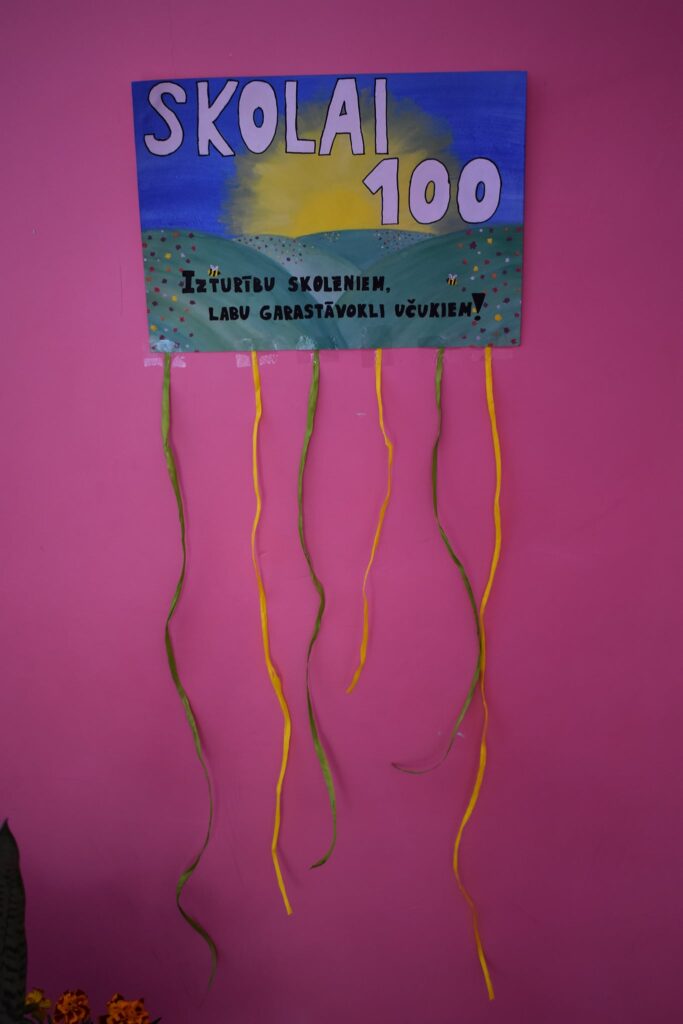 Par godu lielajai jubilejai skolēni izdekorēja savas klases, veidoja kompozīcijas koridoros, iekārtoja zīmējumu izstādes, kā arī izveidoja novēlējumus skolai. Skolas priekšā bija svinīgais brīdis.