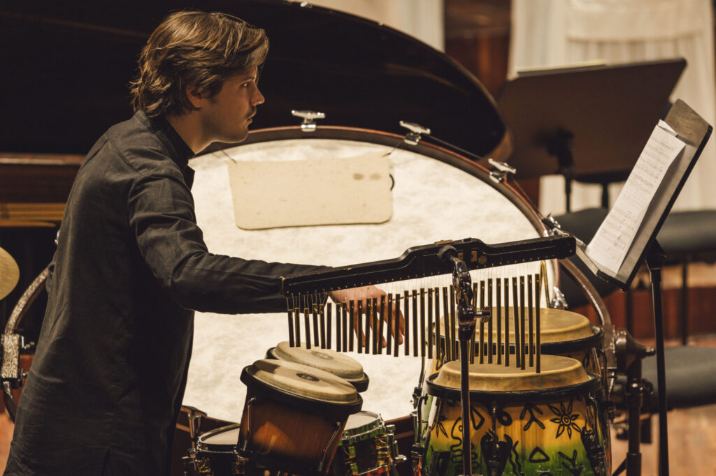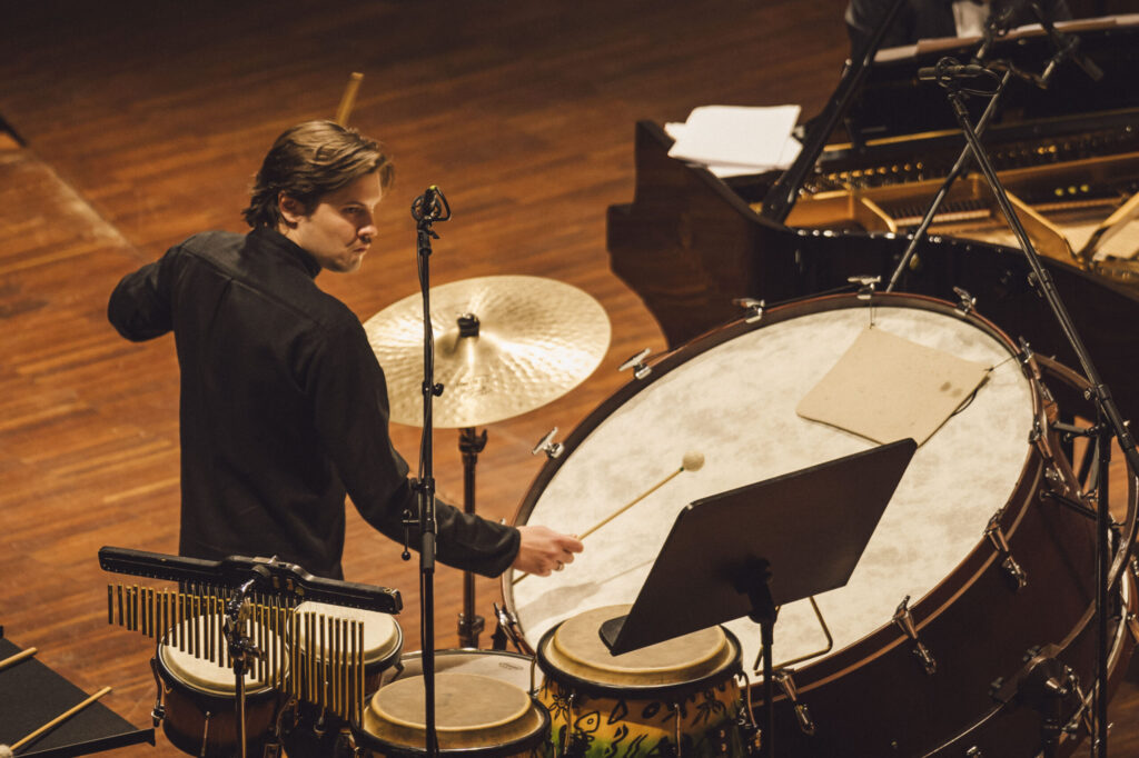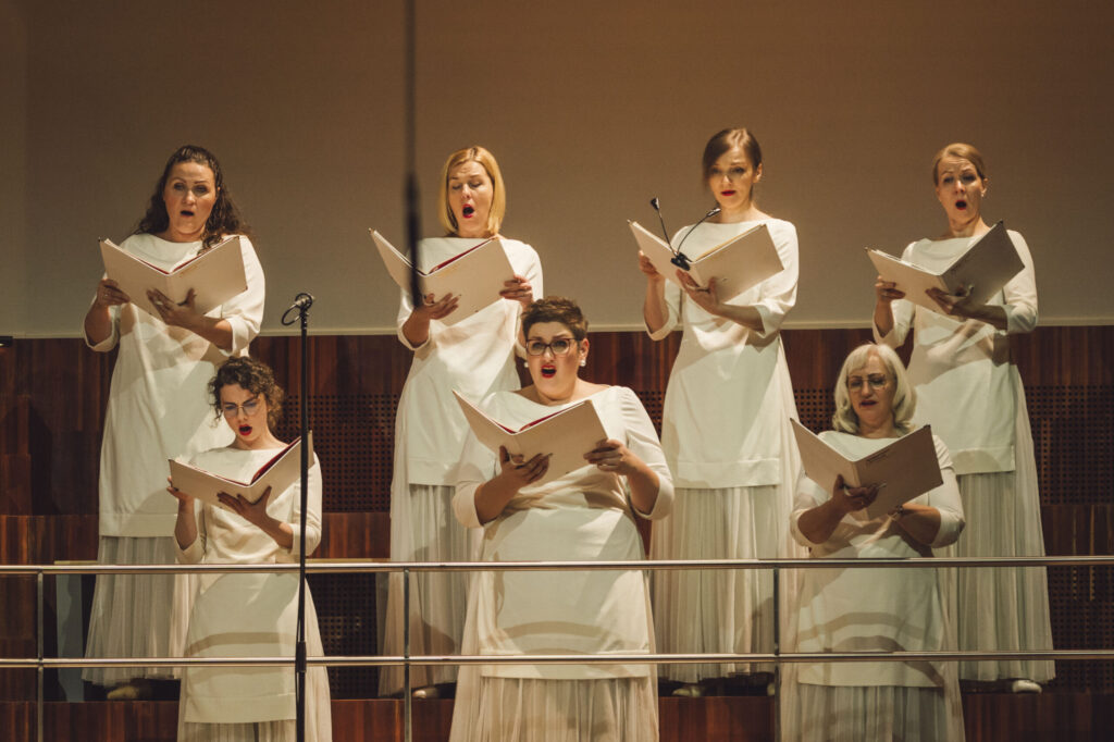 Koncerts iesākās ar ļoti lielu retumu – Paula Dambja “Concerto-fantasia on in nomine Albrecht Düreri”, kas nav atskaņots vairāk nekā trīsdesmit gadus un Liepājā izskanēja ar komponistu saskaņotā jaunrediģētā partitūrā. Ar dzīvīgumu un klātesamību tas liek domāt par cilvēku likteņa priekšā. Viss sākas ar apokaliptiskā jātnieka ierašanos un jājienu pār Aizdaugavas melnajiem mežiem, kur augošās sarkanās ogas ir saulītes asaras. Seko apskaidrota sieviešu kora vokalīze ar Jaunavas mierinošo smaidu, divas efektīgas, spēcīgas daļas ar sitaminstrumentu ritmiem (Reinis Tomiņš) un buramvārdiem – asinij un mērim, un visu noslēdz brīnumskaista “Jaunava zvaigžņu vainagā”, portālu “ReKurZeme” informē SIA “Lielais Dzintars” sabiedrisko attiecību speciāliste Anita Lazdeniece-Grīnberga.