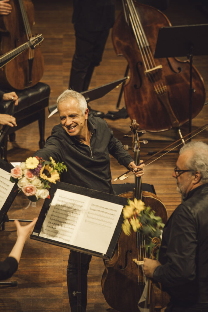 Klausītājiem bija iespēja pieredzēt Vivaldi opusu – “Concerto perduto” (“Pazaudētais koncerts”) čellam, stīgām un “basso continuo RV 787” un čellkoncerta “Per Teresa” (“Terēzei”) RV 788 – fragmentu iedzīvināšanu. No abiem šiem darbiem palikusi viena alta partija un Sollima to papildinājis, radot unikālus skaņdarbus vijolei, čellam un orķestrim, kur barokālā pagātne satiekas ar mūsdienu mūziku. Mūziķu sastāvu papildināja viens no izcilākajiem itāļu vijolniekiem Federiko Guljelmo (Federico Guglielmo), kurš izpaudās arī solista apmluā rečitatīvā no koncerta “Grosso Mogul”.