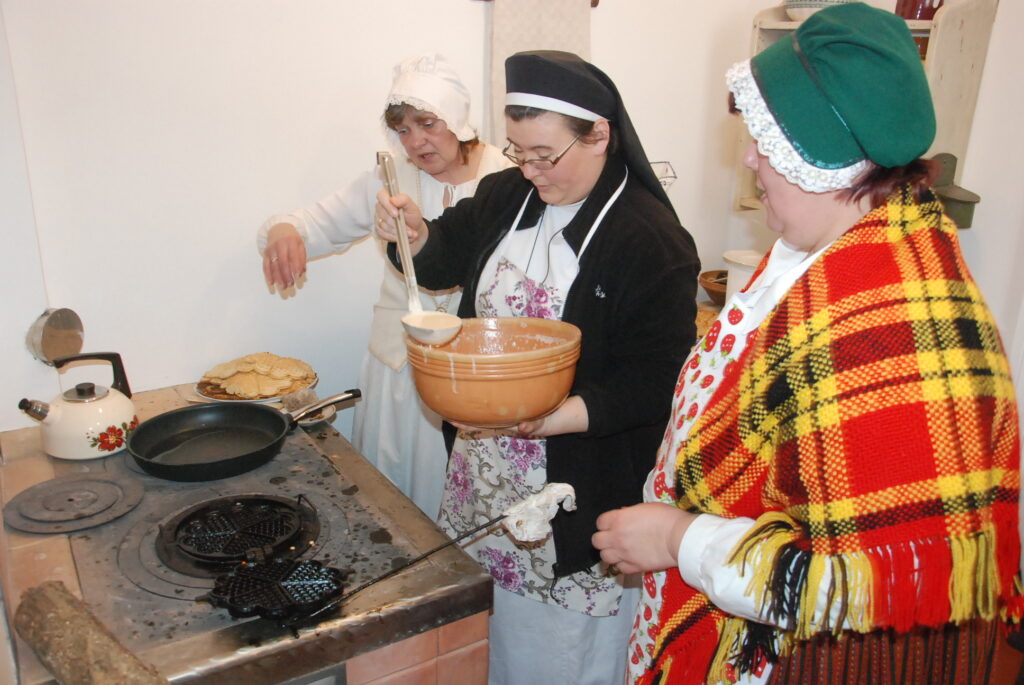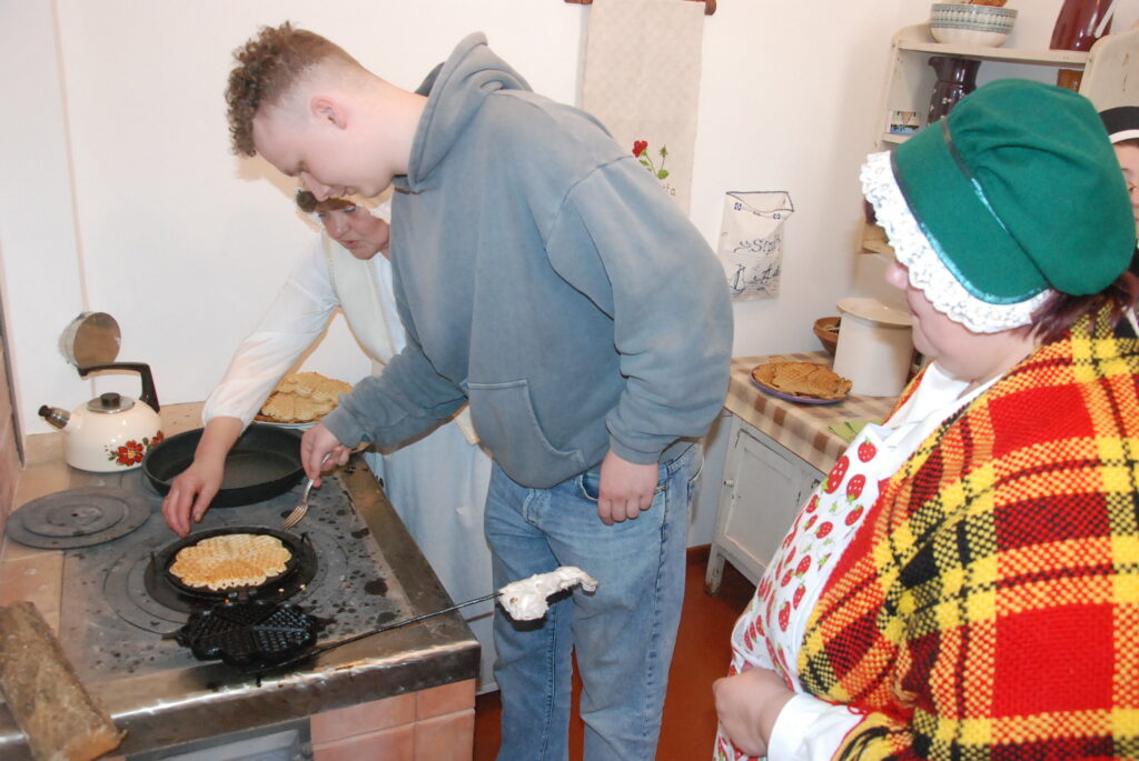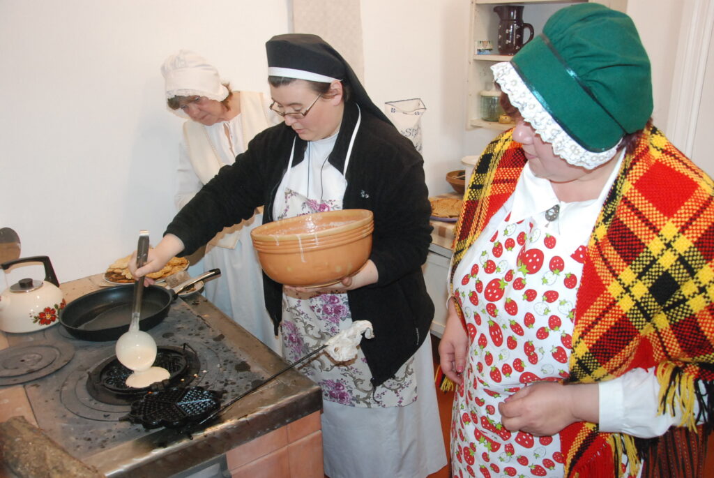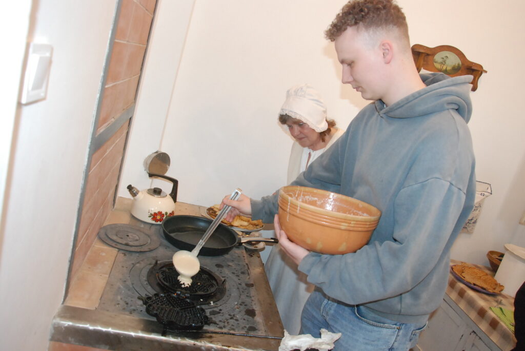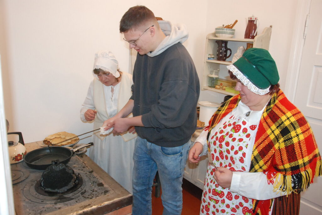 “Demonstrējam, kā cep senču iecienītākās svētku pankūkas – bada pankūkas jeb badeņus, kā senči tās sauca. Mums sētā ir arī senču aka, mums ir nēši un spaiņi. Daudzi nezina, kā agrāk ieguva ūdeni, ka tas nenāca pa ūdens vadiem. To no akas nesa ar nēšiem. To arī ļaujam izmēģināt,” stāsta Dz. Lāce.