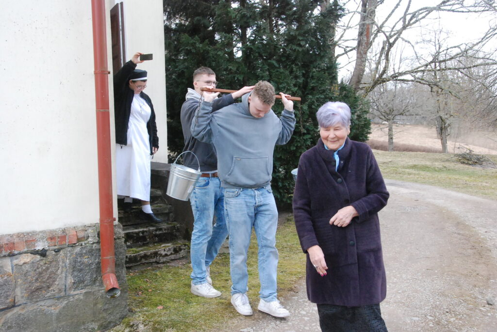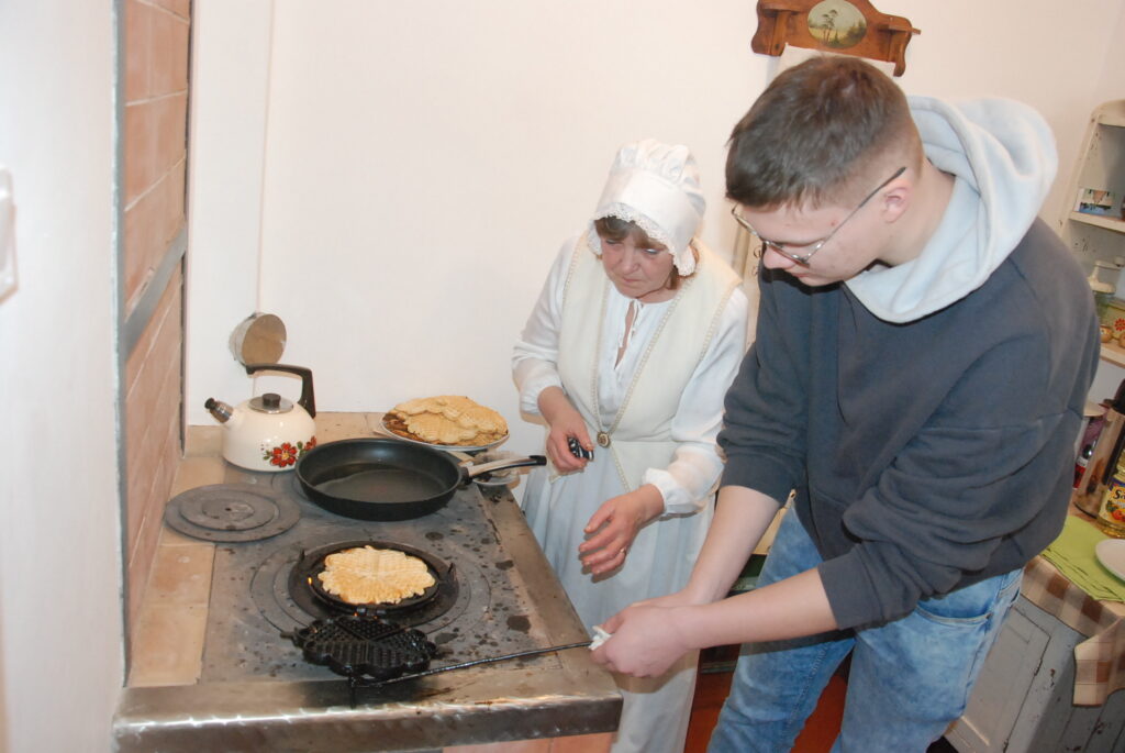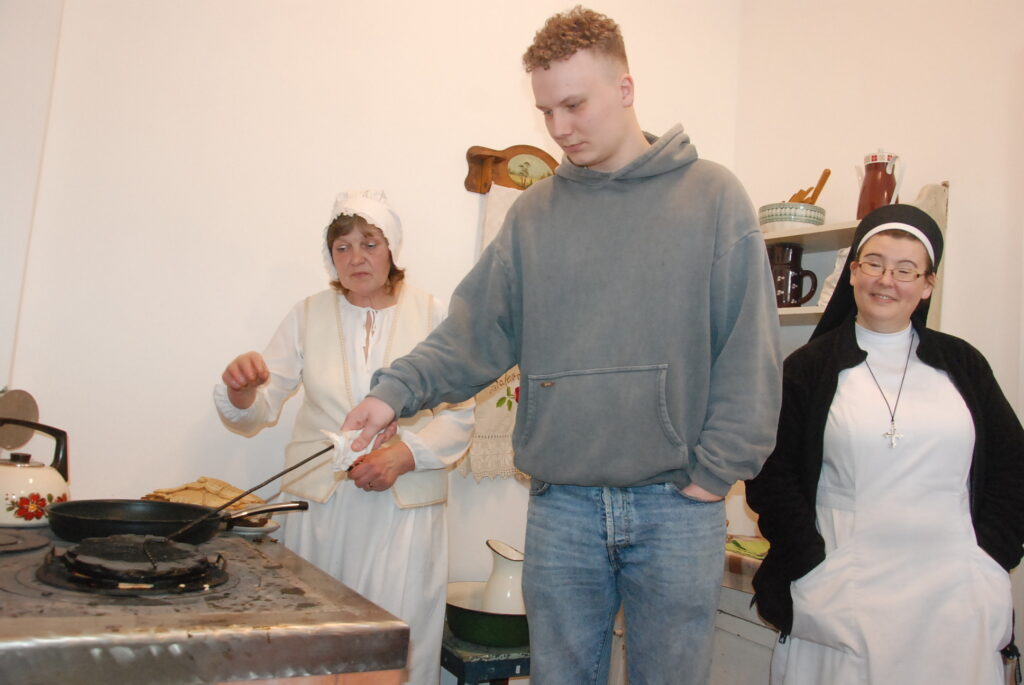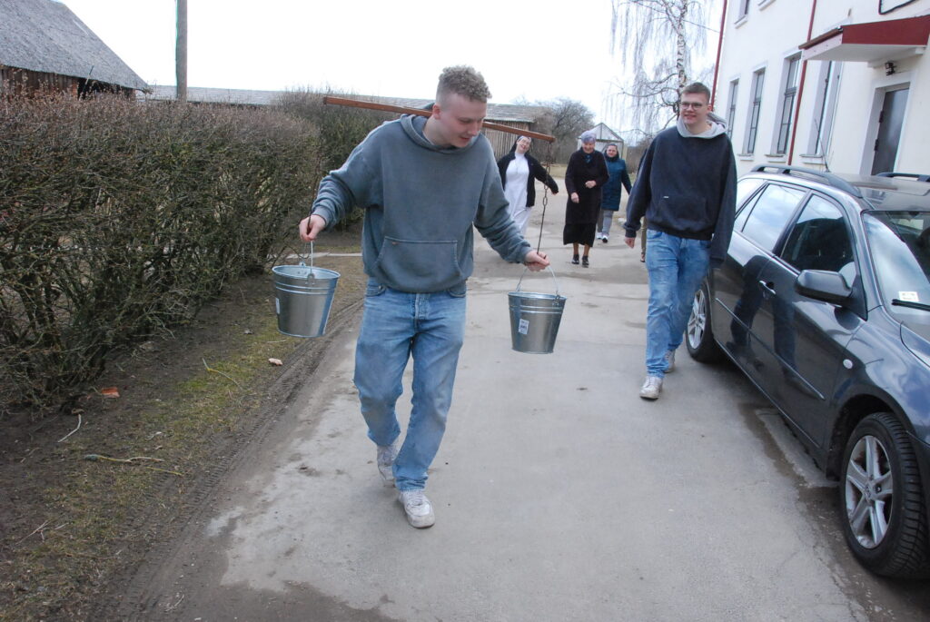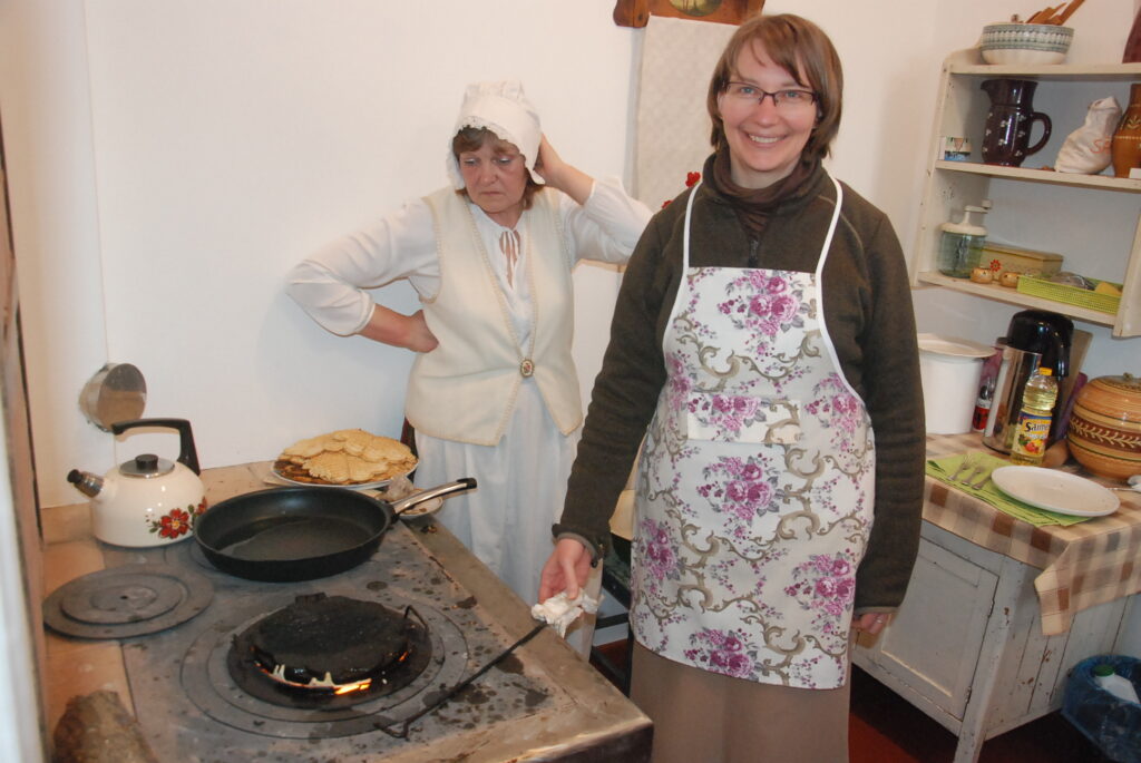 “Demonstrējam, kā cep senču iecienītākās svētku pankūkas – bada pankūkas jeb badeņus, kā senči tās sauca. Mums sētā ir arī senču aka, mums ir nēši un spaiņi. Daudzi nezina, kā agrāk ieguva ūdeni, ka tas nenāca pa ūdens vadiem. To no akas nesa ar nēšiem. To arī ļaujam izmēģināt,” stāsta Dz. Lāce.