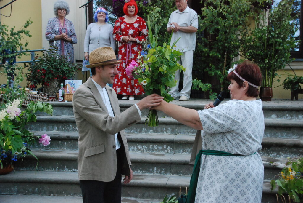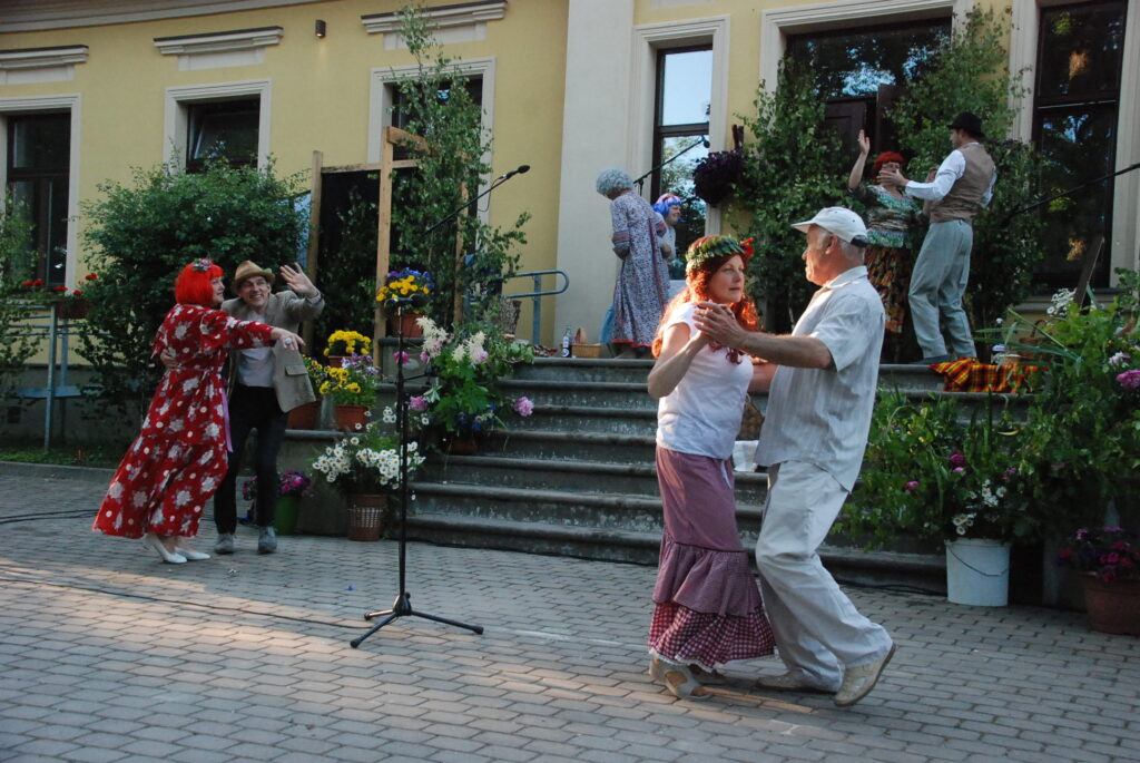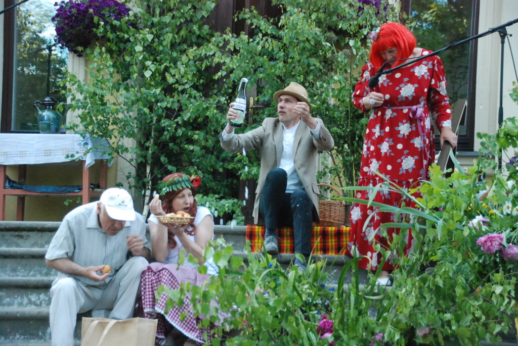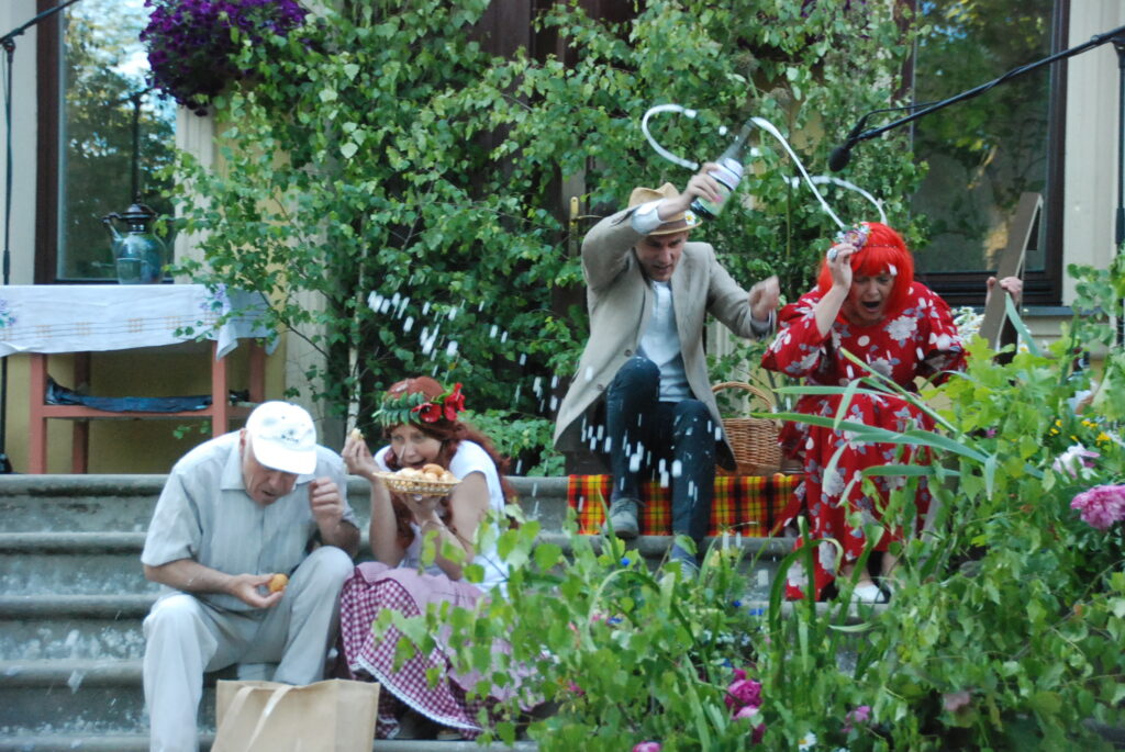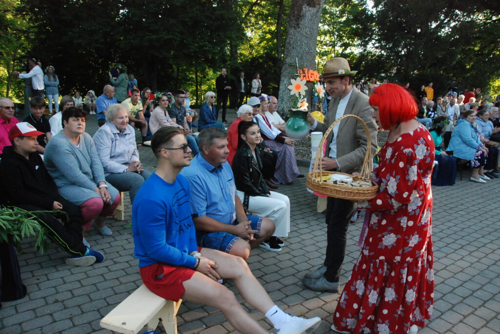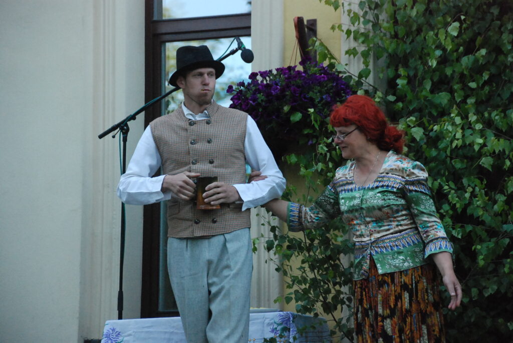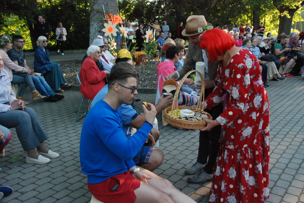 Vecpils amatierteātris “Vai mīļā” un folkloras kopas “Dižlāņu īve” ceturtdien, 23. jūnijā, pie Dižlāņu muižas priecēja ar kopdarbu komēdijizrādi “Krizdoļu vīns”.