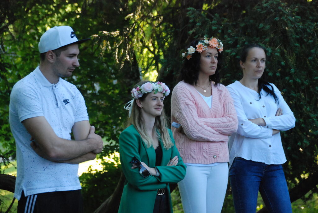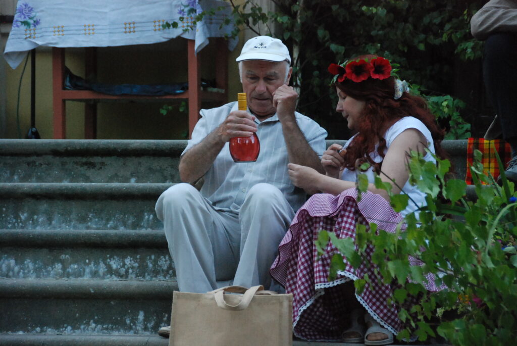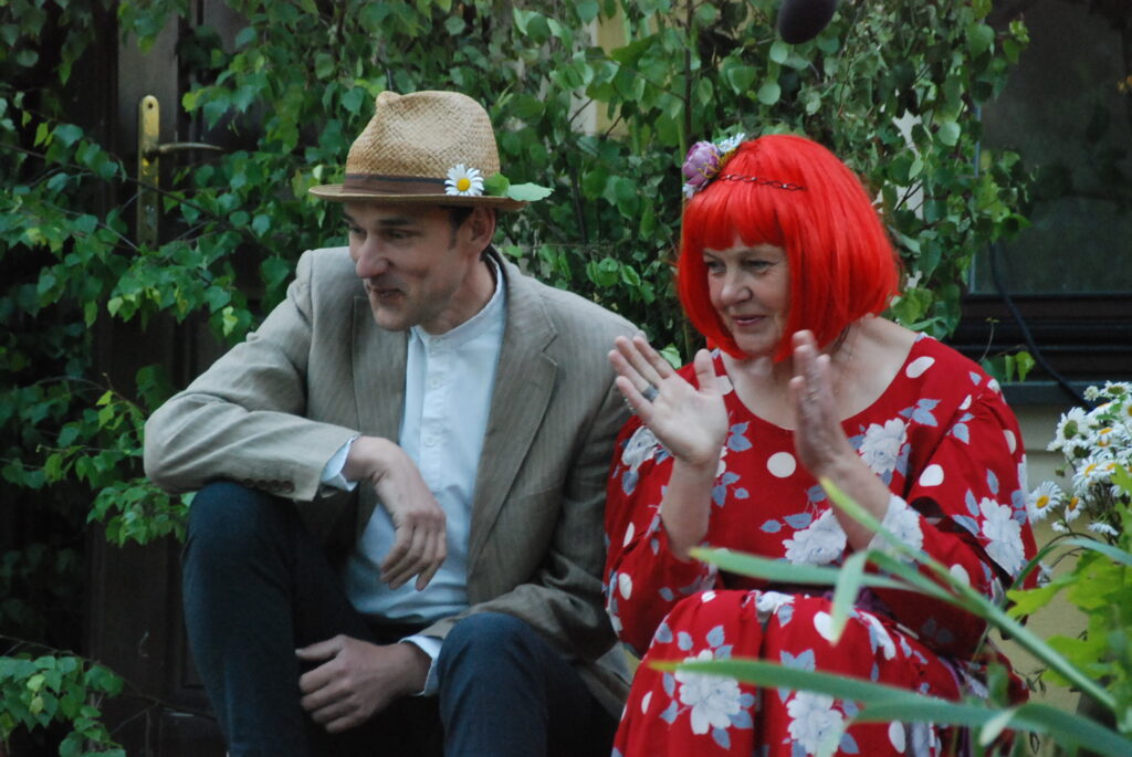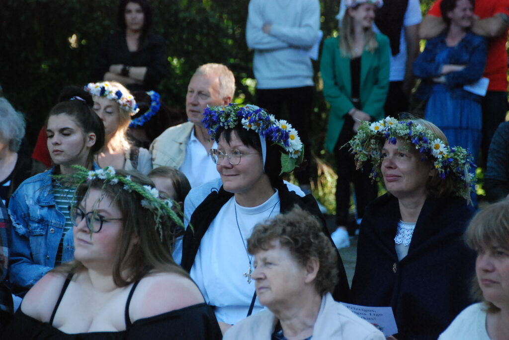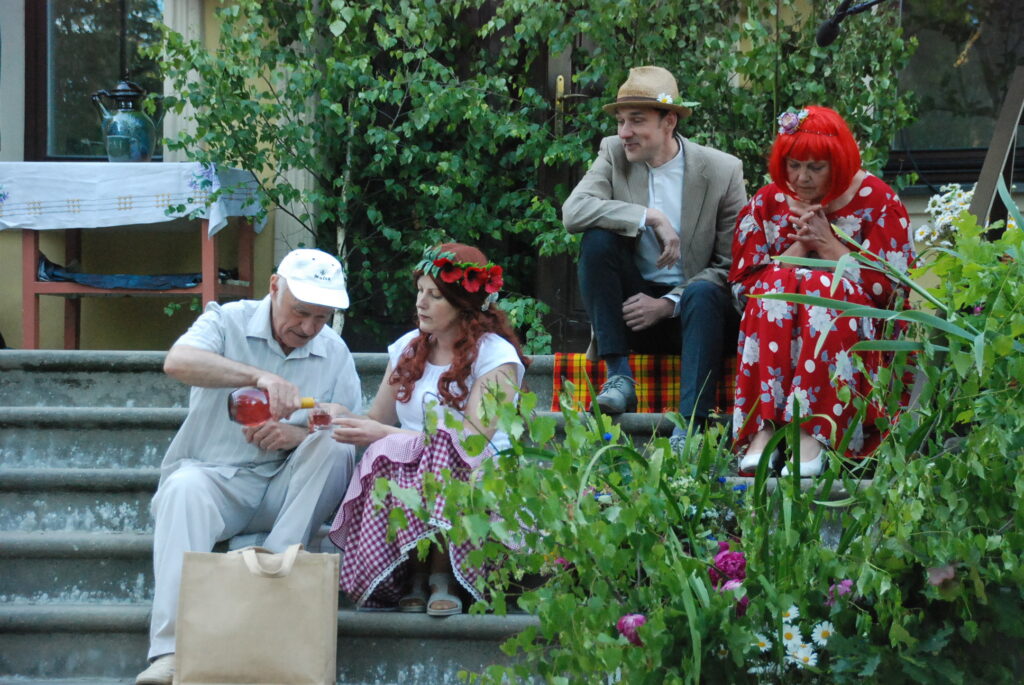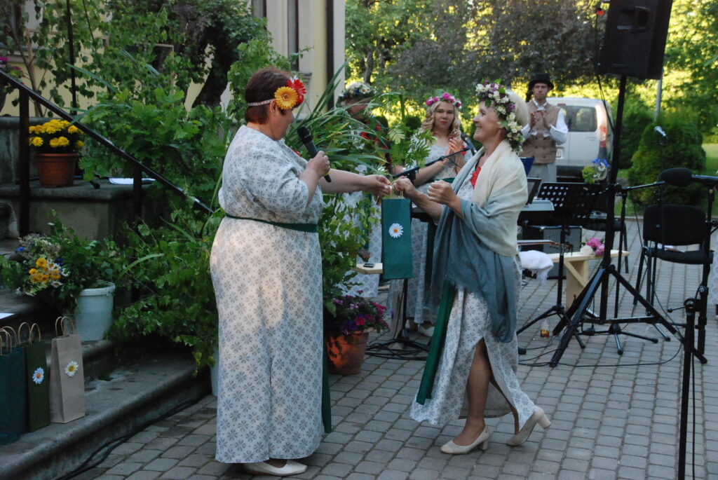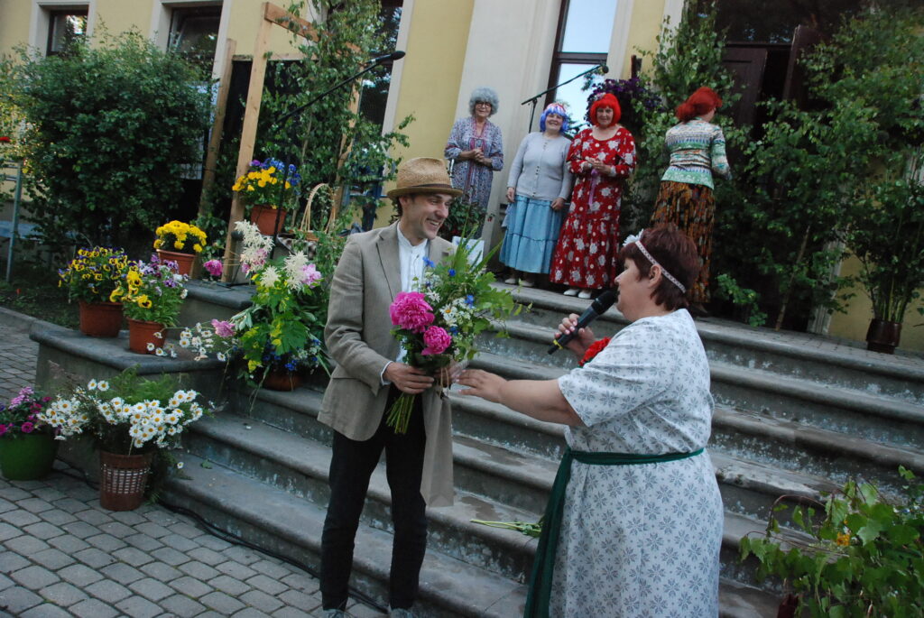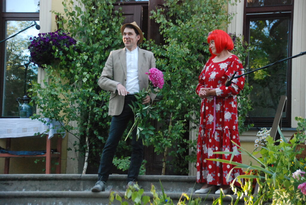 Vecpils amatierteātris “Vai mīļā” un folkloras kopas “Dižlāņu īve” ceturtdien, 23. jūnijā, pie Dižlāņu muižas priecēja ar kopdarbu komēdijizrādi “Krizdoļu vīns”.